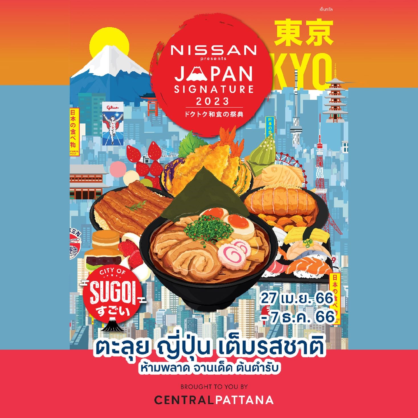 เซ็นทรัลพัฒนา ร่วมกับ นิสสัน มอเตอร์ ประเทศไทย นำคุณออกเดินทางสู่ประสบการณ์ #Cityofsugoi กับงาน NISSAN presents Japan Signature 2023 ตะลุยความอร่อยเต็มรสชาติห้ามพลาดจานเด็ดต้นตำรับ กับเทศกาลอาหารญี่ปุ่นที่ใหญ่ที่สุด แล้วพบกันที่ ศูนย์การค้าเซ็นทรัล 25 สาขา ทั่วประเทศ!