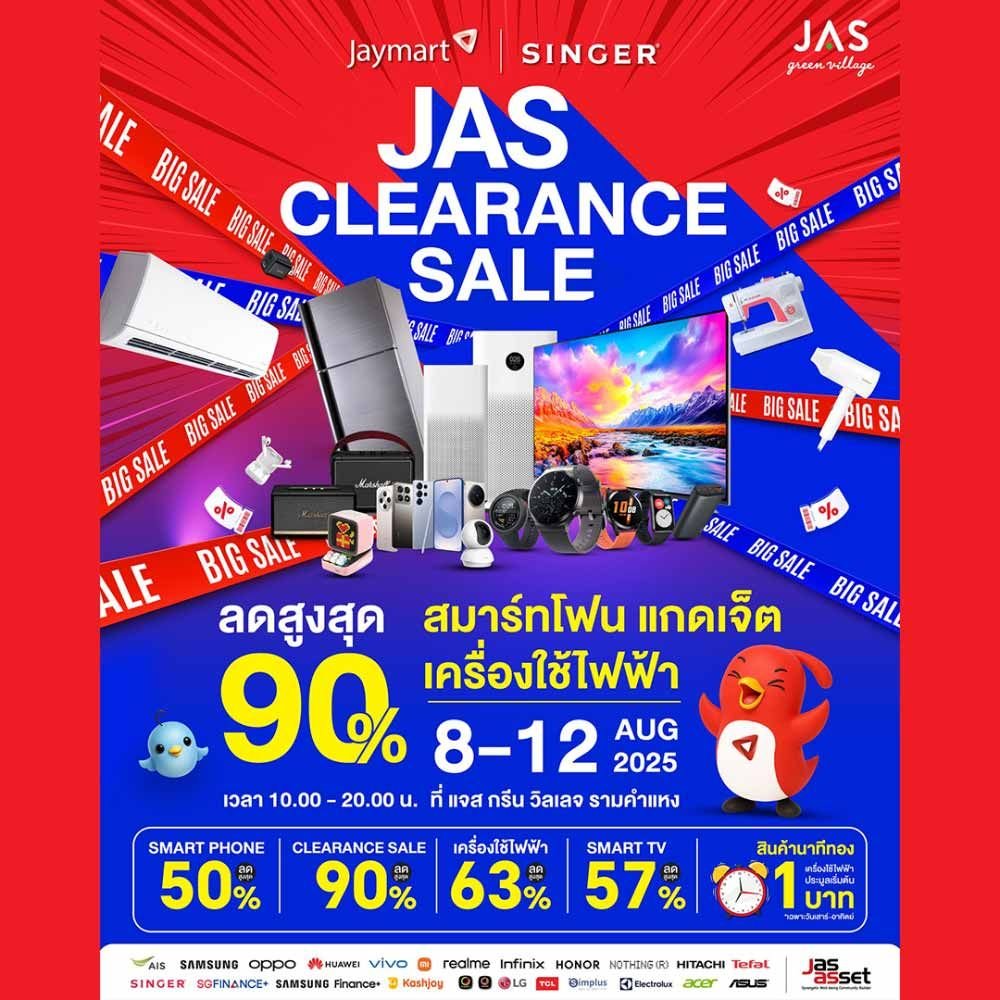 JAS Clearance Sale ยกขบวนสินค้าลดล้างสต๊อคสูงสุด 90% เตรียมตัวให้พร้อม สินค้าหลากหลายทั้งมือถือสมาร์ทโฟน เครื่องใช้ไฟฟ้า และอีกมากมาย !