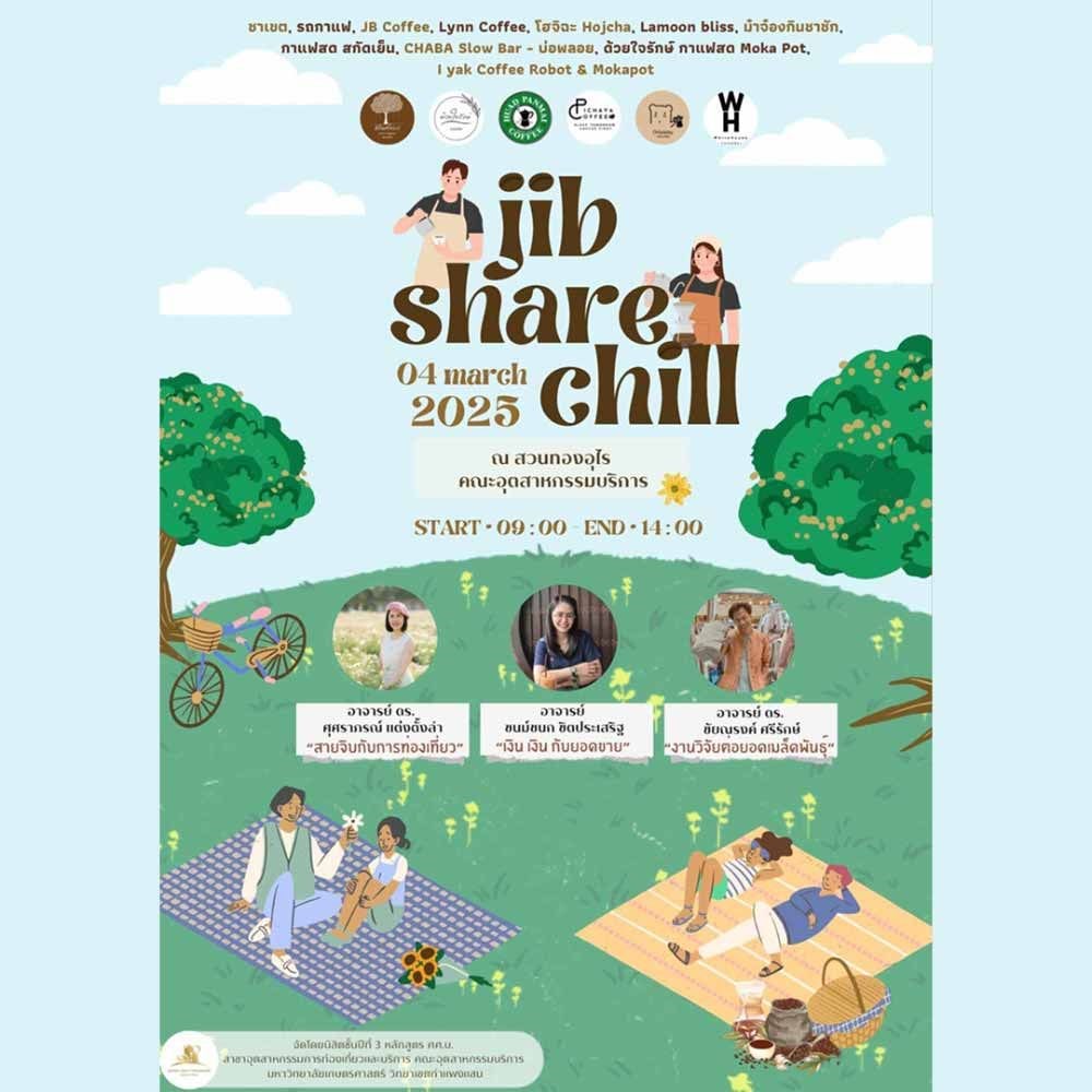 สายคาเฟ่ สายชิลล์ และคนรักเครื่องดื่มห้ามพลาด! เตรียมพบกับงาน Jib Share Chill 2025 เทศกาลแห่งความสดชื่น ที่รวมร้านน้ำ slow bar กาแฟ moka pot และเครื่องดื่มสุดครีเอทีฟมาให้คุณได้ลิ้มลองกันแบบจัดเต็ม ท่ามกลางบรรยากาศสวนสวยสุดชิลล์ ที่จะเปลี่ยนวันธรรมดาให้กลายเป็นวันพิเศษ! จัดโดย นิสิตชั้นปีที่ 3 สาขาอุตสาหกรรมการท่องเที่ยวและบริการ คณะอุตสาหกรรมบริการ มหาวิทยาลัยเกษตรศาสตร์ วิทยาเขตกำแพงแสน