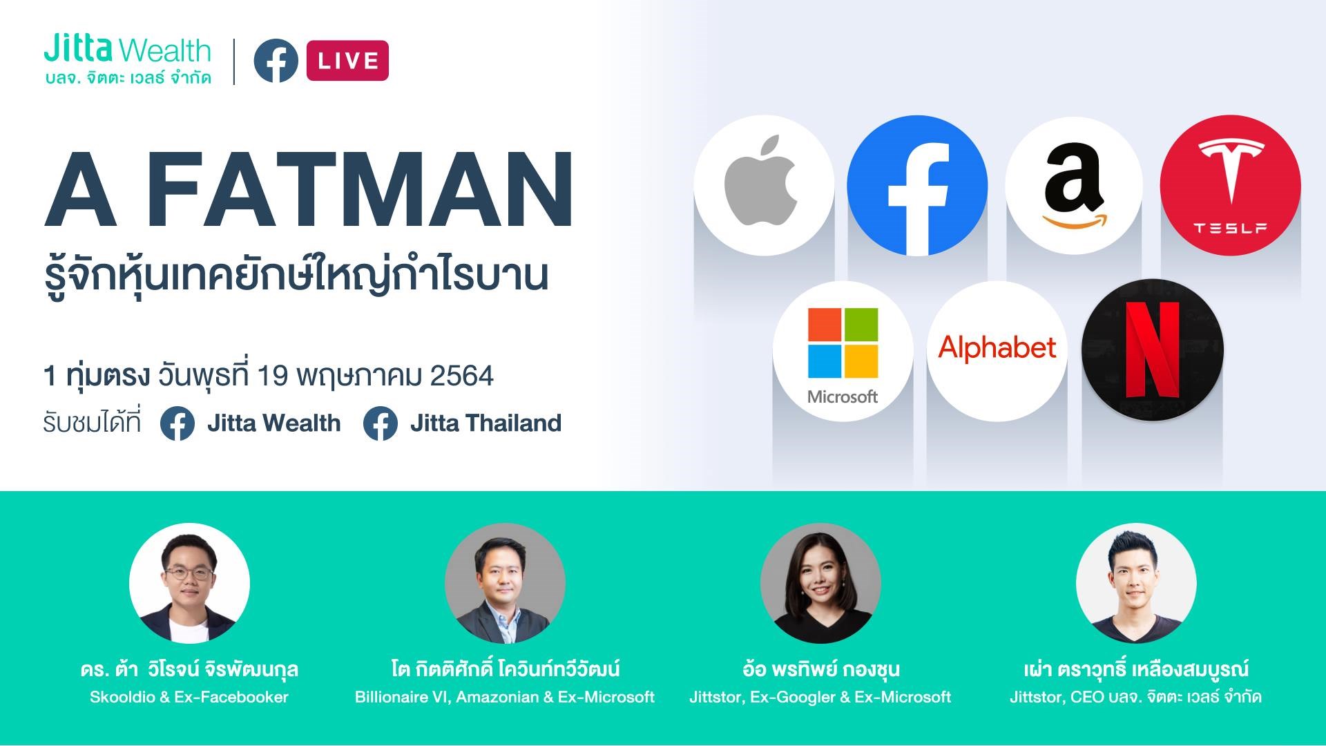 มาร่วมหาคำตอบใน Jitti Wealth Live: A FATMAN รู้จักบริษัทเทคยักษ์ใหญ่กำไรบาน จากผู้ที่เคยเป็นส่วนหนึ่งของบริษัทเทคยักษ์ใหญ่อย่าง