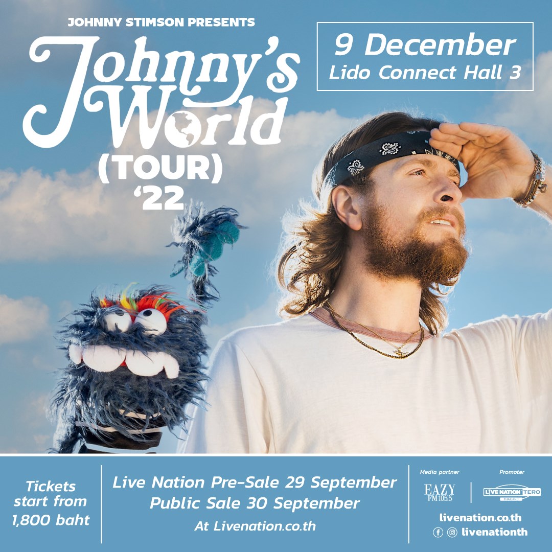 Jo ไหนล่ะ ก็โจละจอห์นละจอห์นละจอห์นนี่ เจ้าของเพลงดังใน Reels อย่าง Smile, Flower, Butterflies ไง กับคอนเสิร์ต Johnny Stimson "JOHNNY’S WORLD (TOUR) ’22" ปั๊วะส่งท้ายปี 9 ธ.ค.นี้ มาชิลที่ ลิโด้ คอนเน็คท์ 3
