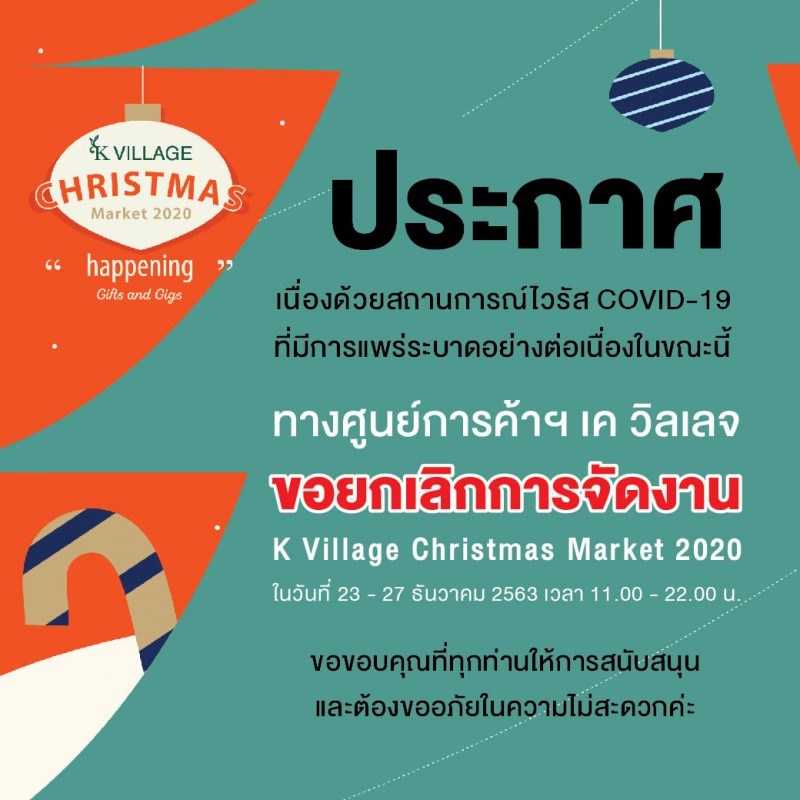 อย่าลืมชวนคนที่คุณรักมาสัมผัสประสบการณ์สุดมหัศจรรย์ที่จะให้ทุกคนได้ฉลองความสุขครบทุกโมเม้นต์ตลอดช่วงเทศกาลคริสต์มาสนี้ที่งาน K Village Christmas Market 2020 “happening” Gifts and Gigs ในวันที่ 23-27 ธันวาคม 2563 ตั้งแต่เวลา 11.00–22.00 น.