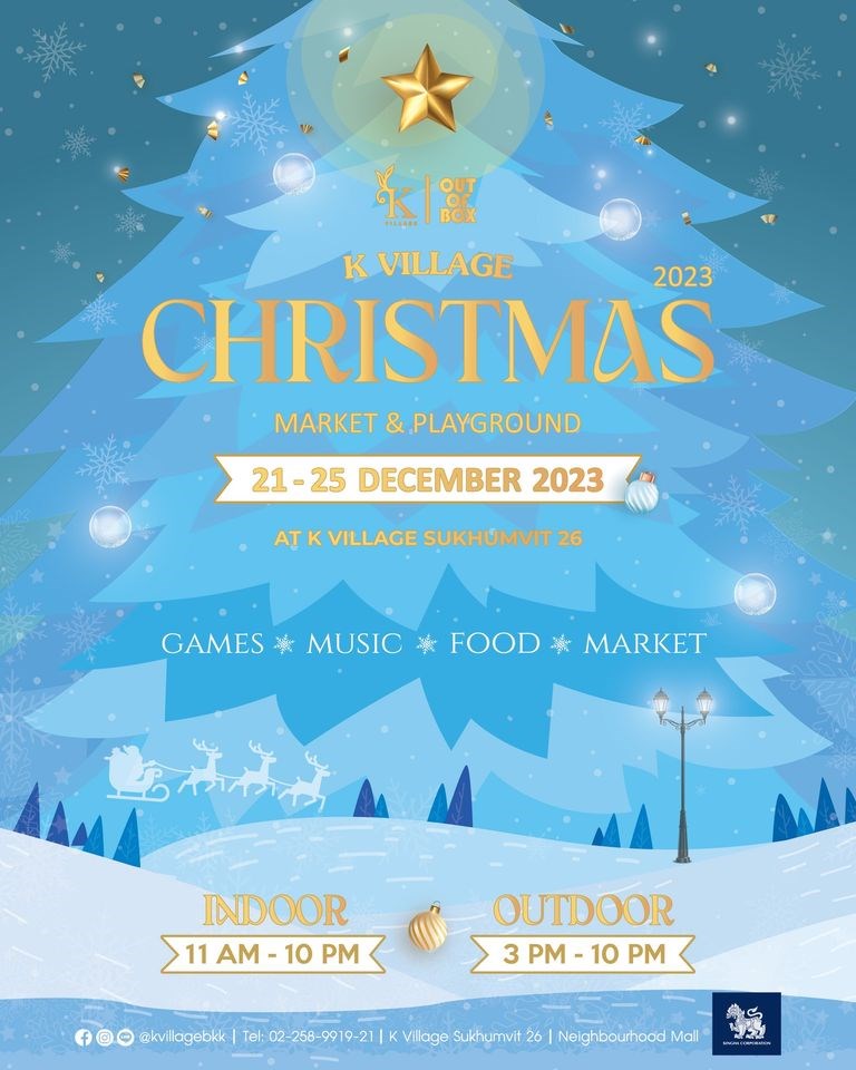 มาร่วมสร้างความทรงจำดี ๆ ส่งท้ายปีกับงาน “K Village Christmas Market & Playground 2023” ที่ ศูนย์การค้า เควิลเลจ สุขุมวิท 26 แหล่งรวมความสุขครบรสของทุกคนในครอบครัวที่ขอแนะนำให้คุณมาสัมผัสด้วยตนเอง ในวันพฤหัสที่ 21- วันจันทร์ที่ 25 ธันวาคม 2566 Indoor ตั้งแต่เวลา 11.00–22.00 น. และ Outdoor ตั้งแต่เวลา 15.00–22.00 น.