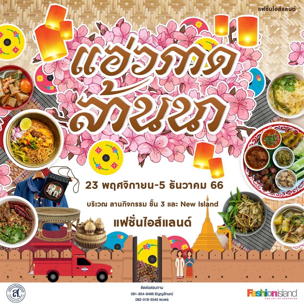 Fashionisland ชวนคุณมาม่วนอ๊ก ม่วนใจ๋ สัมผัสเสน่ห์แห่งล้านนา วิถีผู้คน บรรยากาศตลาดคนเมืองในงาน “แอ่วกาดล้านนา” พบกับหลากหลายเมนูแสนอร่อยสไตล์ชาวเหนือ ให้คุณได้เลือกซื้อสินค้า อาหาร ของฝาก ของที่ระลึกทางภาคเหนือภูมิปัญญาท้องถิ่น นอกจากนี้ยังมีอาหารหลากหลายเมนู อาทิ ไส้อั่ว แคปหมู น้ำพริกหนุ่ม เส้นยำ น้ำพริกอ่อง และอีกหลากหลายเมนูอาหารน่าทานขนาด พร้อมมุมถ่ายรูปสวย ๆ ตั้งแต่วันที่ 23 พ.ย. - 5 ธ.ค. 66 ณ ชั้น 3 บริเวณลานกิจกรรม และโซน New Island ศูนย์การค้าแฟชั่นไอส์แลนด์