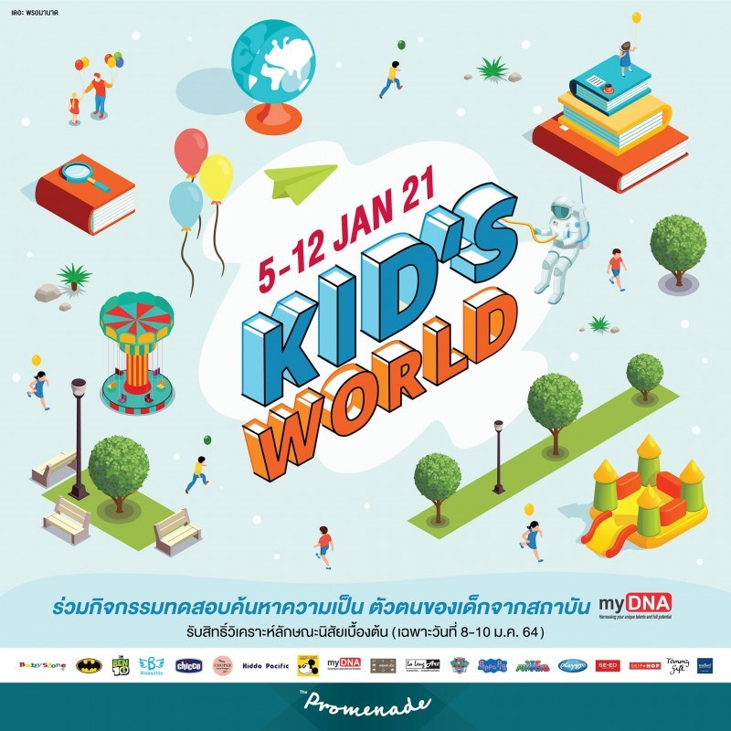 Kid’s World วันที่ 5 - 12 มกราคม 2564 ณ ชั้น 1 ศูนย์การค้าเดอะพรอมานาด โลกแห่งความสุข สนุกได้ทุกวัน "Kid’s World" วันที่ 5 - 12 ม.ค. 64 ณ ชั้น 1 ศูนย์การค้าเดอะพรอมานาด พบกับสินค้าเด็กหลากหลายแบรนด์ดัง อาทิ เสื้อผ้า ของเล่น สื่อการเรียนรู้ในราคาพิเศษ พร้อมมีสิทธิ์ร่วมกิจกรรมทดสอบค้นหาความเป็นตัวตนของเด็ก (วิเคราะห์ลักษณะนิสัยเบื้องต้น) จากสถาบัน myDNA เฉพาะวันที่ 8 - 10 ม.ค. 64