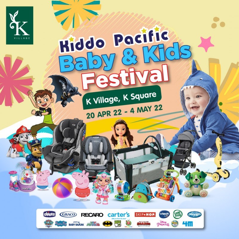 Kiddo Pacific : Baby & Kids Festival จัดหนักจัดเต็ม สินค้าคุณภาพสำหรับคุณแม่และเด็ก ของเล่นลิขสิทธิ์แท้ อาทิ แบรนด์ Chicco, Graco, Recaro, Baby Jogger, Vtech, LeapFrog, Skip Hop and Playgro รวมถึงของเล่นเด็กแบรนด์ลิขสิทธิ์แท้ Paw Patrol, Ben 10, Peppa Pig, Disney และอื่น ๆ อีกมากมาย วันที่ 20 เมษายน - 4 พฤษภาคม 2565 ณ K Village ลาน K Square