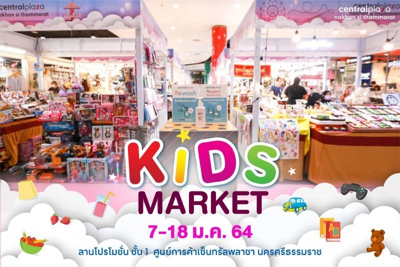 Kids Market วันที่ 7 - 18 มกราคม 2564 ณ ลานโปรโมชั่น ชั้น 1 ศูนย์การค้าเซ็นทรัลพลาซา นครศรีธรรมราช "Kids Market" เอาใจครอบครัวและน้อง ๆ หนู ๆ ในช่วงต้นปีแบบนี้ กับของเล่นของสะสมสำหรับน้องๆหนู และขนมอาหารคาวหวานหลากหลายชนิดภายในงาน ห้ามพลาดดด!! วันนี้ - 18 มกราคม 2564 ลานโปรโมชั่น ชั้น 1 ศูนย์การค้าเซ็นทรัลพลาซา นครศรีธรรมราช