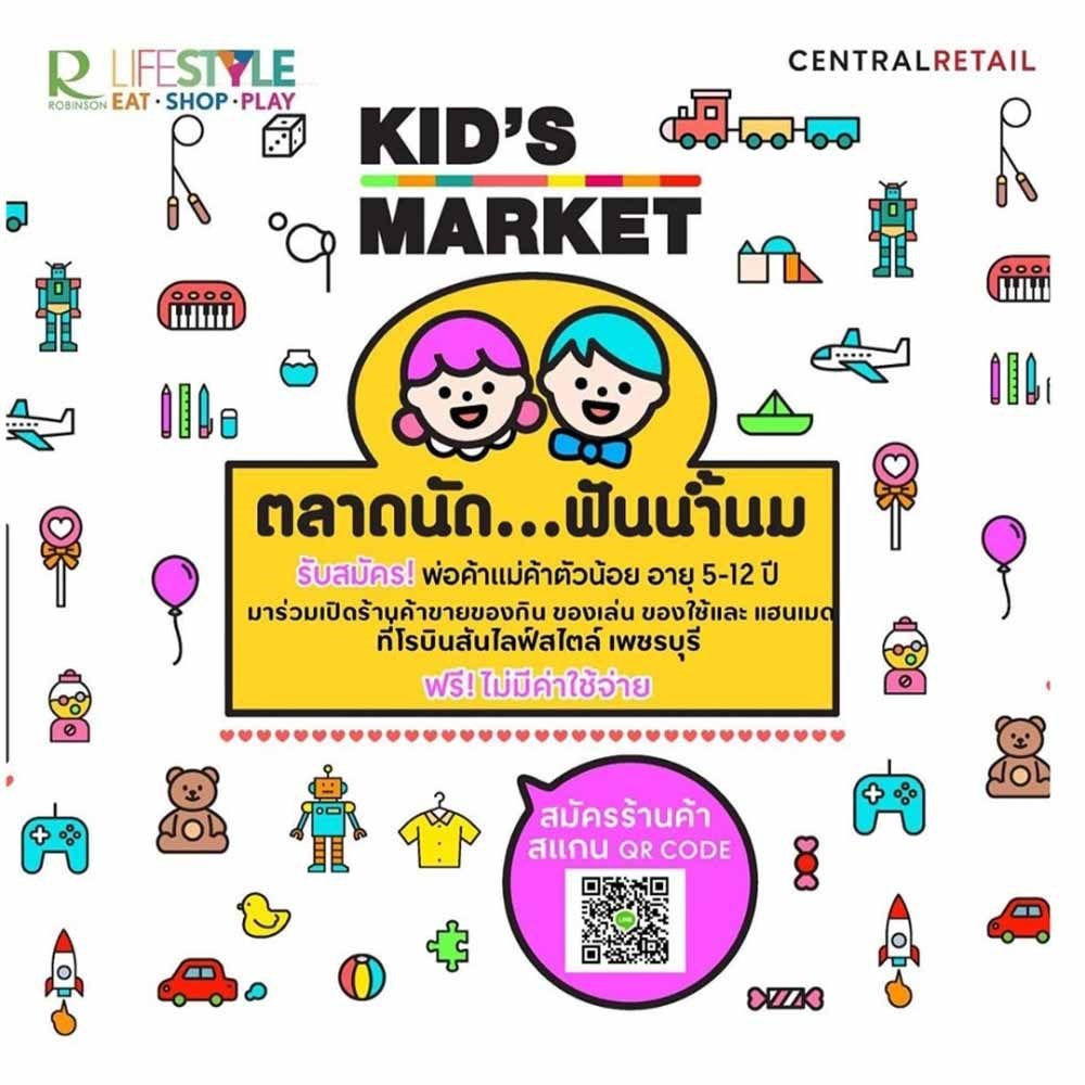 เตรียมพบกับ...KID'S MARKET ขอเชิญพ่อค้าแม่ค้า ตัวจิ๋ว มาเปิดประสบการณ์ฝึกทักษะการเจรจา ที่เปิดร้านขายของสุดคิ้วท์ และอาหารแสนอร่อย ชวนมาอุดหนุนพ่อค้าแม่ค้าตัวน้อยกัน เวลา 10.00 - 19.00 น. วันเสาร์ - อาทิตย์ที่ 29 - 30 มีนาคม 2568 ที่ชั้น 2 ข้างโรงภาพยนตร์เมเจอร์ ศูนย์การค้าโรบินสันไลฟ์สไตล์ เพชรบุรี