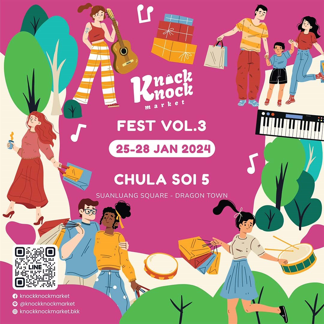เทศกาล Knock Knock กลับมาแล้ว ‘Knock Knock Market Fest vol.3’ จัดใหญ่บนถนนจุฬา ซอย 5 เกือบ 200 บูธ ร้านค้าทั้งของกิน และสินค้าแฟชั่น มือ1 มือ2 ฟรีคอนเสิร์ตจากศิลปินทุกวัน