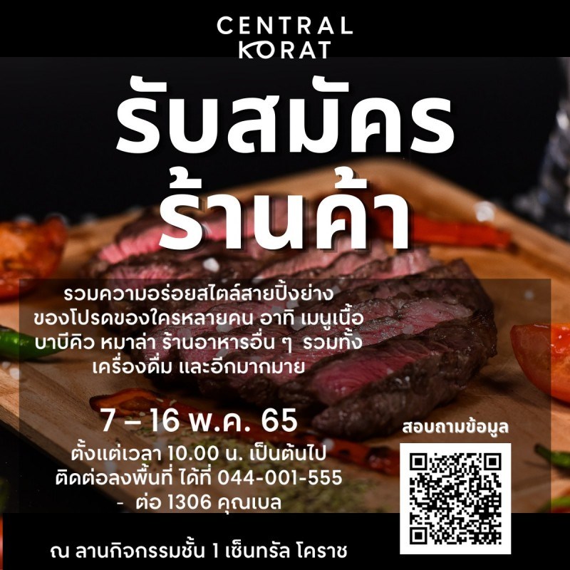 เปิดรับสมัครร้านค้าออกบูธ! "KORAT GRILL"รวมความอร่อยสไตล์สายปิ้งย่าง ของโปรดของใครหลายคน อาทิ เมนูเนื้อ บาบีคิว หมาล่า ร้านอาหารอื่น ๆ รวมทั้งเครื่องดื่ม และอีกมากมาย วันที่ 7 - 16 พ.ค. 65 ตั้งแต่เวลา 10.00 น. เป็นต้นไป ณ ลานกิจกรรมชั้น 1 เซ็นทรัล โคราช