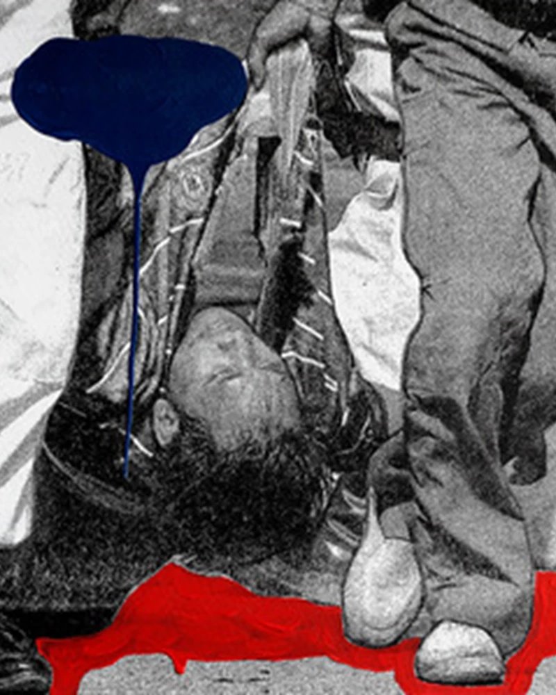 ความไม่แยแสของทางการต่อความอยุติธรรมครั้งนี้ ทำให้ มานิต ศรีวานิชภูมิ ต้องสร้างสรรค์ภาพถ่ายจิตรกรรมขนาดใหญ่เพื่อสื่อสารถึงเหตุฆาตกรรมโดยรัฐครั้งนี้ ด้วยการนำเอาภาพข่าวเหตุการณ์จริงจากหนังสือพิมพ์ที่รายงานสถานการณ์ ณ เวลานั้น มาพิมพ์ขยายเป็นภาพขาว-ดำบนผ้าแคนวาสขนาดใหญ่ แล้วระบายสีแดงและน้ำเงินของธงชาติไทยบนผืนภาพเหล่านั้นอีกที “อยากช็อกและรบกวนจิตใจผู้ชม” มานิตกล่าวถึงสิ่งที่เขาทำ เพื่อทำให้เราเห็นและรู้สึกถึงความรุนแรงนั้นอีกครั้ง