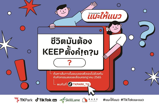 สถาบันอุทยานการเรียนรู้ หรือ ทีเคพาร์ค ร่วมกับ TikTokUni SkillLane และ BASE Playhouse ชวนนักเรียนมัธยมศึกษาตอนปลาย ร่วมกิจกรรม เปิดตำราวิชาแนะให้แนว ตอน: ชีวิตมันต้อง KEEP ตั้งคำถาม! บนแพลตฟอร์ม TikTok @TKPARK_TH เพื่อให้ฝึกการตั้งคำถามและหาคำตอบในเส้นทางที่ชอบกับคำถามที่ใช่ สำหรับการตัดสินใจเลือกประกอบอาชีพในอนาคต กับ ร่วมสนุกและได้ความรู้ผ่าน 2 กิจกรรม ได้แก่