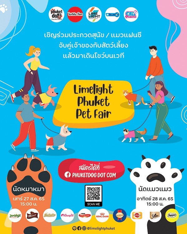 ไลม์ไลท์ อเวนิว ภูเก็ตร่วมกับ Phuketdog โมเดิร์นด๊อก โรงพยาบาลสัตว์ทองหล่อ ภูเก็ต และโรงพยาบาลสัตว์เจ้าฟ้าอันดามัน เชิญร่วมงานสัตว์เลี้ยงที่สนุกที่สุด LIMELIGHT Phuket Pet Fair วันที่ 27 - 28 สิงหาคม 2565 เวลา 10.00 - 19.00 น. ณ ลานกิจกรรมชั้น 1 ไลม์ไลท์ อเวนิว ภูเก็ต และไลม์ไลท์การ์เด้นท์ อีกหนึ่งกิจกรรมในงานเชิญร่วมประกวดสุนัข/แมวแฟนซี จับคู่เจ้าของกับสัตว์เลี้ยง แล้วมาเดินโชว์ว้าว ๆ บนเวที LIMELIGHT Phuket Pet Fair นัดหมาหมา เสาร์ 27 สิงหาคม 2565 เวลา 15.00 น. นัดแมวแมว อาทิตย์ 28 สิงหาคม 2565 เวลา 15.00 น. สมัครได้ที่ https://forms.gle/NRAni7ZMRdRGEvs29 หรือ fb.me/phuketdogdotcom