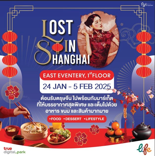 ต้อนรับตรุษจีน 2025 ไปกับ ‘Lost in Shanghai Market’ ที่ True Digital Park เตรียมพบกับบรรยากาศสุดพิเศษและสินค้ามากมาย ไม่ว่าจะเป็นอาหาร ขนม และของไลฟ์สไตล์มากมาย พบกันที่ ลานกิจกรรม EAST Eventery ฝั่ง East ชั้น 1, True Digital Park