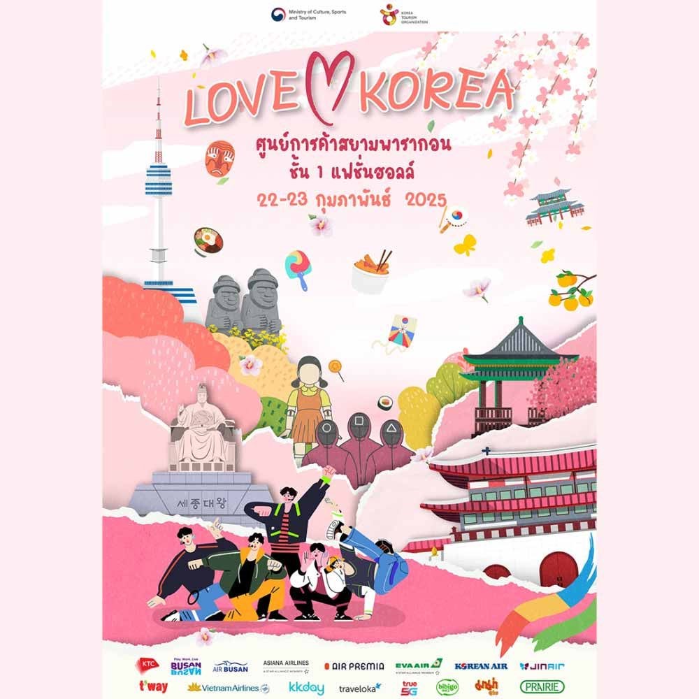 องค์การส่งเสริมการท่องเที่ยวเกาหลี (KTO) ชวนทุกท่านมาสัมผัสเสน่ห์และสีสันแห่งเกาหลีกับงาน “Love Koea 2025” เตรียมตัวให้พร้อม! สายเกาหลีทั้งหลายห้ามพลาด กับงานที่รวบรวมทุกสิ่งที่คุณต้องการสำหรับการเดินทางไปท่องเที่ยวเกาหลี งานนี้จัดเต็มเพื่อให้คุณได้วางแผนทริปในฝันแบบครบจบในที่เดียว!