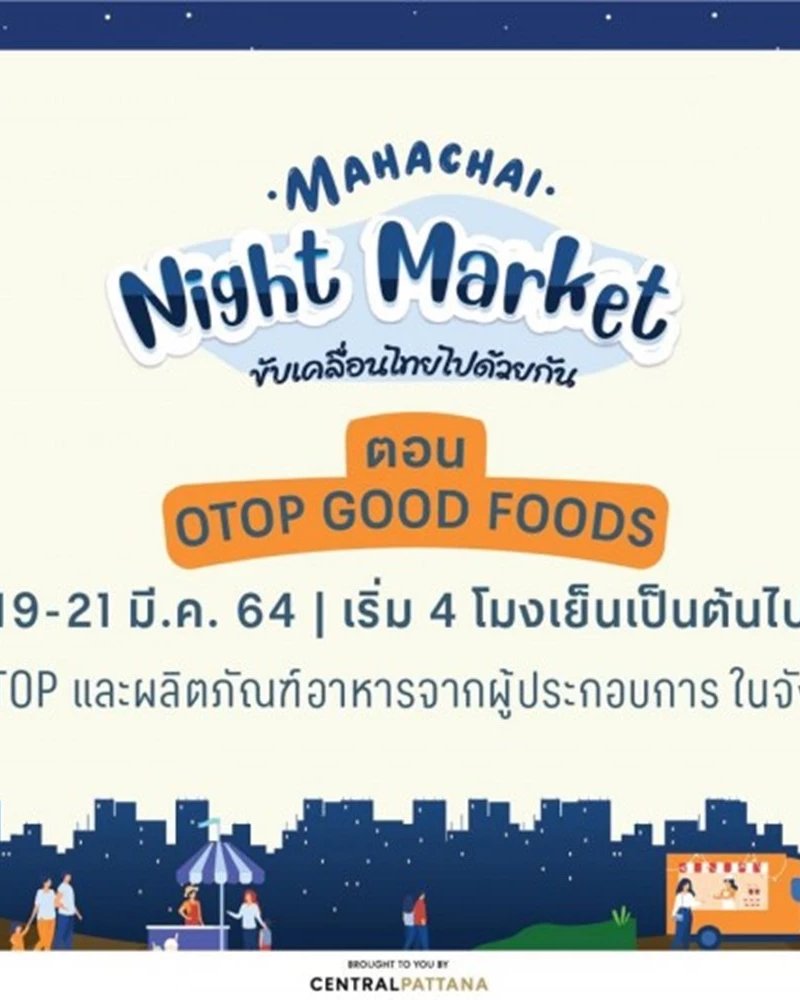 Mahachai Night Market ตอน OTOP GOOD FOODS วันที่ 19 - 21 มีนาคม 2564 ณ ลานกิจกรรมด้านหน้า เซ็นทรัลพลาซามหาชัย กลับมาอีกครั้งกับ Mahachai Night Market ตอน OTOP GOOD FOODS ช้อปสินค้า OTOP และผลิตภัณฑ์อาหารจากผู้ประกอบการในจังหวัดสมุทรสาคร