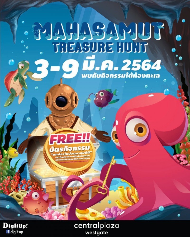 Mahasamut TreasureHunt ณ ลานโปรโมชั่น ชั้น 1 (ข้างร้าน Muji ) ความสนุกกลับมาอีกครั้ง กิจกรรมสนุก ๆ ต้อนรับปิดเทอมมของเด็ก ๆ ที่กำลังจะมาถึง กับงาน Mahasamut TreasureHunt งานที่เด็ก ๆ จะได้สนุกไปกับ กิจกรรมเวิร์คช้อปต่าง ๆ เเละร่วมสนุกไปกับการตกปลาเพื่อลุ้นรับลูกโป่งปลาตัวใหญ่ กอดกลับบ้านกันอีกด้วย ที่สำคัญภายในงานยังมีสินค้าเเละของเล่นเสริมทักษะอีกเพียบให้คุณพ่อคุณเเม่ได้ช้อปปิ้งกันด้วย
