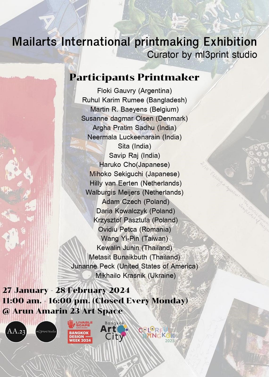 Come join and be a part of the culture of exchanging knowledge through printmaking art in the Mailarts International printmaking Exhibition 2024 at Arun Amarin 23 Art Space, Soi Arun Amarin 23.