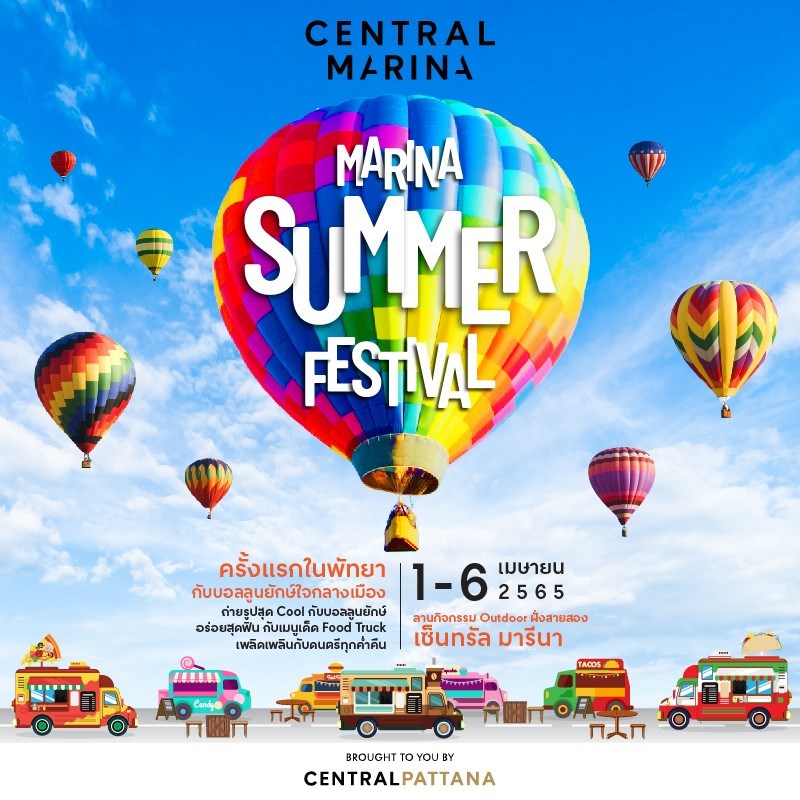ครั้งแรกในพัทยา เปิดประสบการณ์สุดตื่นตาตื่นใจ บอลลูนยักษ์ใจกลางพัทยากับงาน Marina Summer Festival ถ่ายรูปคู่กับบอลลูนหลากสีที่จะมาสาดความสดใสต้อนรับ Summer ชิมความอร่อยจากขบวน Food Truck เพลิดเพลินกับเสียงดนตรีได้ทุกค่ำคืน พลาดไม่ได้แล้ว Summer นี้ต้องมา! พบกันวันที่ 1 - 6 เมษายน 65 ณ ลานกิจกรรม out door ฝั่งสาย 2 เซ็นทรัล มารีนา