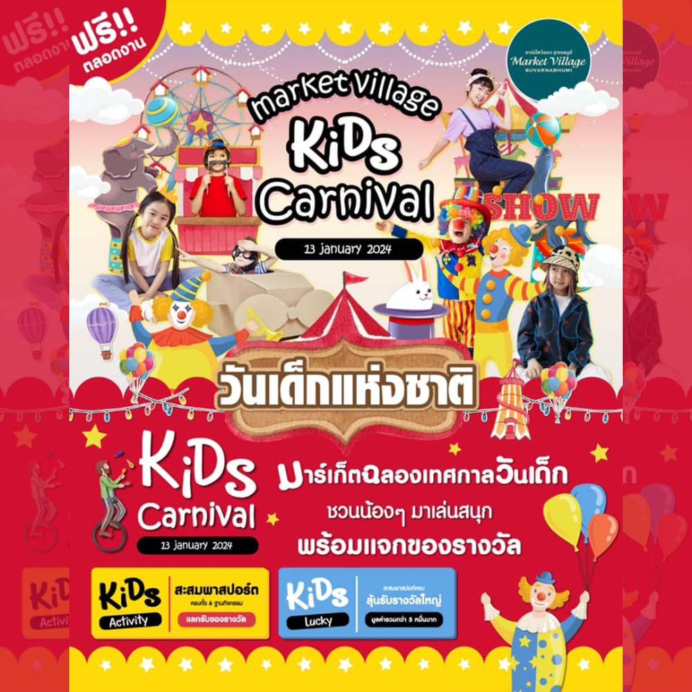 คุณพ่อคุณแม่ฉลองวันเด็กปีนี้ ต้องมาที่ศูนย์การค้ามาร์เก็ตวิลเลจสุวรรณภูมิ พบกับงาน Market Village Kids Carnival 2024 สนุก สุด มันส์ ไปพร้อมกับกิจกรรมและของรางวัลมากมาย สนุกฟรีตลอดทั้งงาน! วันที่ 13 ม.ค. 67