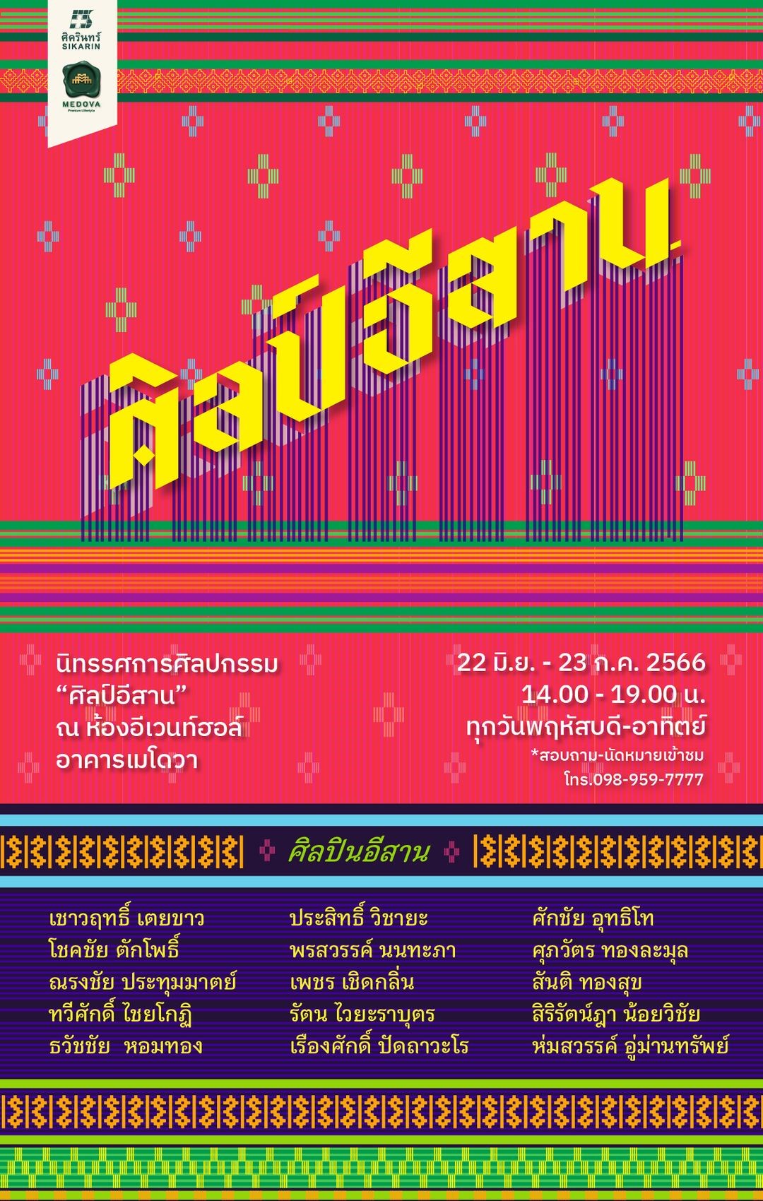 Medova ชวนชม “ศิลป์อีสาน” นิทรรศการศิลปะที่ผู้ชมจะได้ชมผลงานของศิลปินอีสาน 15 ท่านที่ร่วมกันถ่ายทอด วิถีชีวิต ความงามของชาวอีสาน รวมถึงความคิด มุมมองของคนอีสานที่มีต่อสิ่งน่าสนใจต่างๆรอบตัวและรอบโลก ทั้งในแบบเหมือนจริง (Realistic) แบบนามธรรม (Abstract) แบบประทับใจ (Impression) ไปจนถึงรูปแบบเหนือจริง (Surreal)