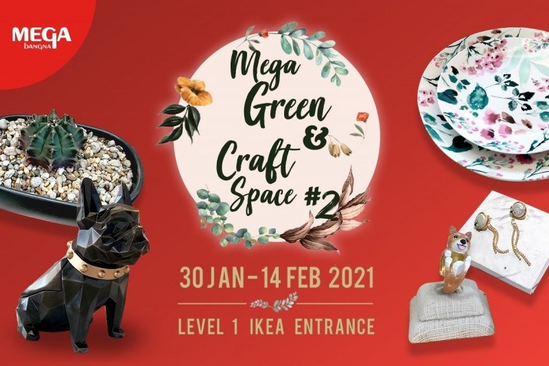Mega Green and Craft Space #2 วันที่ 30 มกราคม 2564 - 14 กุมภาพันธ์ 2564 ณ บริเวณทางเข้าอิเกีย ชั้น 1 ศูนย์การค้าเมกาบางนา ใครพลาดงานในครั้งแรกไม่ต้องเสียใจ มาเดินเลือกซื้อกันได้ในครั้งนี้ได้เลย ขอบอกเลยว่ามีของให้เลือกมากขึ้นกว่าเดิมอีกด้วย ไม่ว่าจะเป็นต้นไม้นานาพันธุ์ ทั้งไม้ดอกและไม้ประดับ และพลาดไม่ได้!! กับสินค้าแฮนด์เมด เครื่องประดับ เสื้อผ้า ของใช้ ของแต่งบ้าน และเฟอร์นิเจอร์ เช่น รูปภาพศิลปะติดฝาผนัง, ตาข่ายดักฝัน, เสื้อผ้าดีไซน์เก๋, หมวกกันยูวี, ต่างหู, กระเป๋า และอีกมายมากที่รอทุกคนอยู่ภายในงาน สุดปังกันไปเลยกับงานในครั้งนี้ หลากหลายของสารพัดให้เลือกดูเลือกซื้อ บอกเลยว่ามาเดินงานนี้กลับไปได้ของแต่งทั้งตัว แถมไม่ว่าจะที่บ้านหรือโต๊ะที่ทำงานต้องออกมาเริ่ดแน่นอน