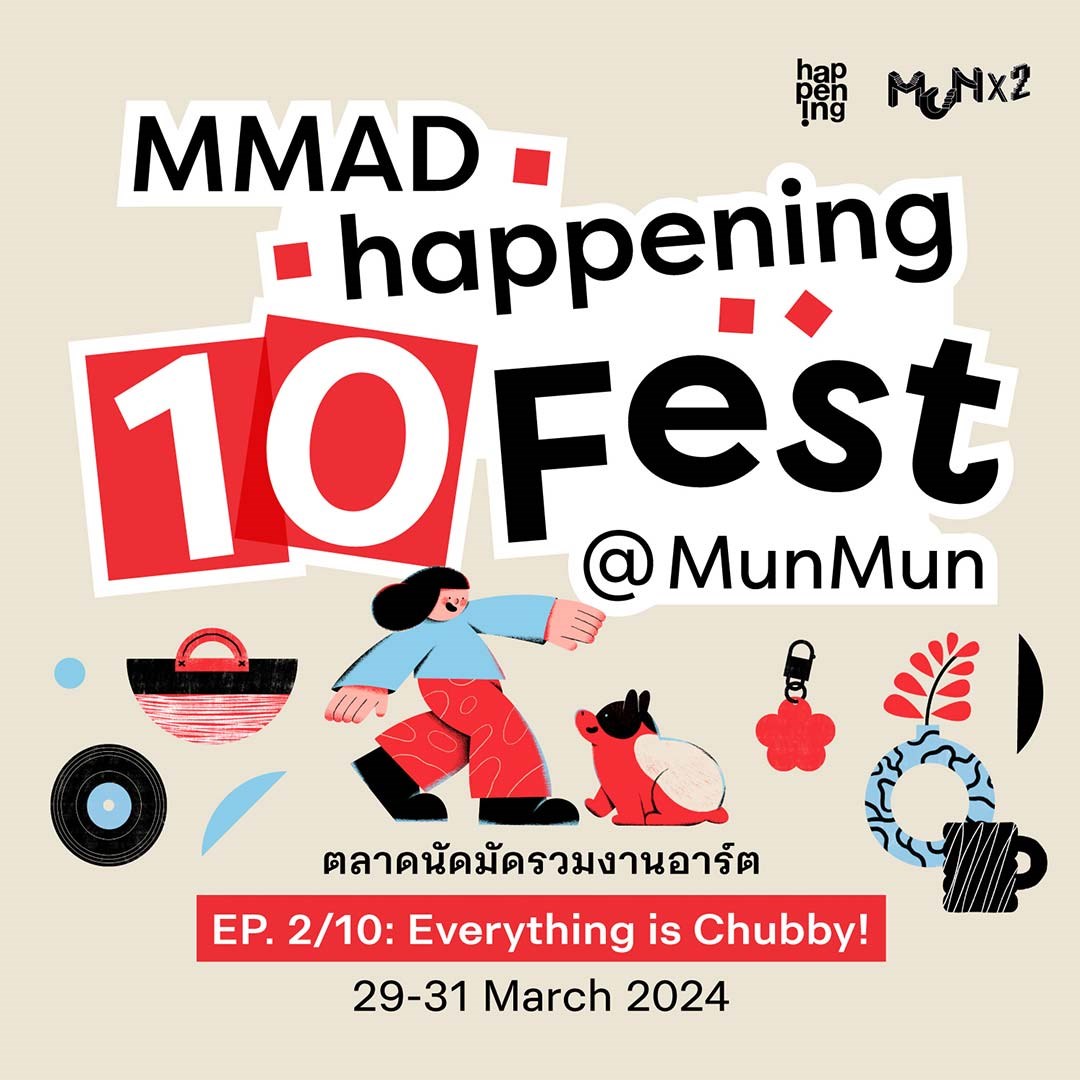 สุดสัปดาห์ปลายเดือนมีนาพวกเราขอจองตัวคุณ! พลาดไม่ได้กับทุกความน่ารักที่จะเกิดใน MMAD happening 10 Fest EP.2/10: Everything is Chubby ซึ่งได้ศิลปินสาวมากความสามารถอย่าง ชนิดา อารีวัฒนสมบัติ หรือ Chubbynida มาร่วมครีเอทความสดใสผ่านคาแรกเตอร์ของเธอเอาไว้ที่ ‘Photo Spot’ หรือจะเป็นมินิคอนเสิร์ตจากเหล่าศิลปิน 6 วง 6 สไตล์ที่รอให้คุณมาโยกตัวตามจังหวะเพลงของเขาและเธอไปพร้อมๆ กันอย่าง TONHON, Lemon Soup, PHAFUN, Daniel Ryn, Uncle Ben และ OME รวมถึงเวิร์กชอปดี ๆ จาก Yibdin studio, ปั้นจิ๋ว by ppl และบูทร้านค้าอย่าง boy make, 73_บ้านสวน, WELA KNIT & MOONPILL, 8.9km.studios Art & Craft, Comecat.cat, Jankhum garden และอีกมากมายที่เรียงรายกันอยู่ทั่วทั้งบริเวณ MunMun Srinakarin!