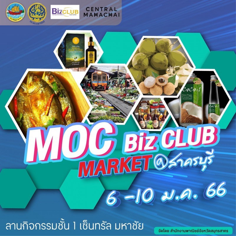 เตรียมพบกับงาน MOC biz CLUB MARKET @สาครบุรี กิจกรรมจัดแสดงสินค้า และจัดจำหน่ายสินค้าจากโครงการสร้างความเข็มแข็งเครือข่ายธุรกิจวิสาหกิจขนาดกลาง และขนาดย่อม (เครือข่ายธุรกิจ Biz Club จังหวัดสมุทรสาคร) อาทิ สินค้าแปรรูปจากผลผลิตทางการเกษตร, ของดีจังหวัดสมุทรสาคร และสินค้าจากวิสาหกิจชุมชนต่าง ๆ ฯลฯ วันที่ 6 - 10 มกราคม 2566 ณ ลานกิจกรรมชั้น 1 เซ็นทรัล มหาชัย