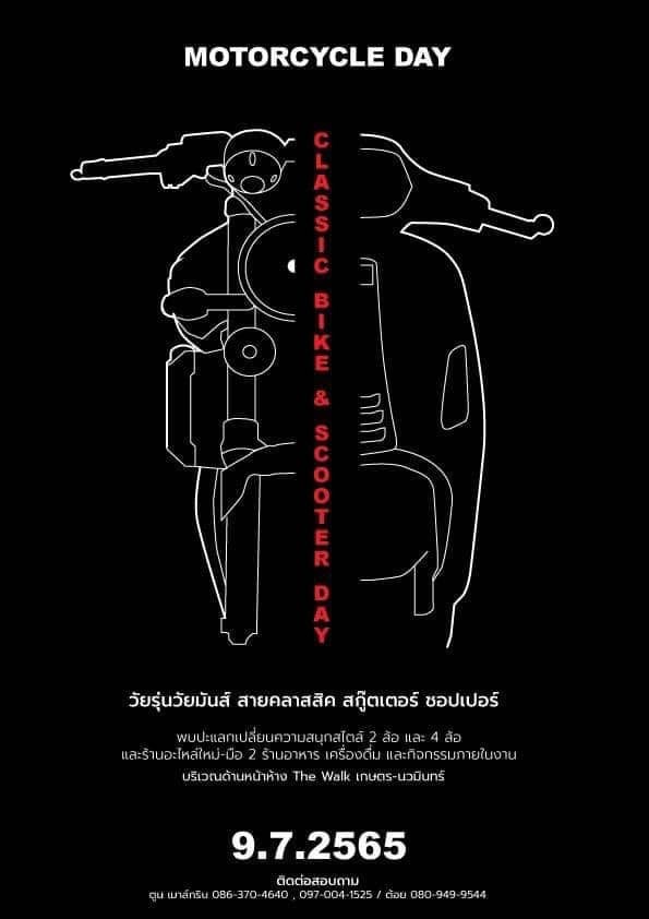 วัยรุ่นวัยมันส์คอนเฟิร์มมาคับคั่ง งานครั้งนี้จะพลาดไม่ได้! สายคลาสสิค สกู๊ตเตอร์ ช็อปเปอร์ คัสต้อม เชิญมาพบปะ แลกเปลี่ยนสไตล์ 2 ล้อ 4 ล้อ ร้านอะไหล่ใหม่และมือ2 อาหาร เครื่องดื่ม แฟชั่นสายวิลวิเทจ อีกทั้งกิจกรรม ภายในงานเตรียมพร้อม เวลา 17.00 - เที่ยงคืน