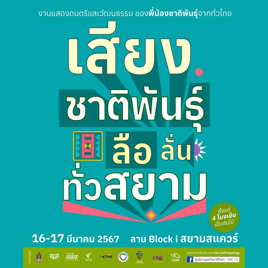 งานดนตรี เสียงชาติพันธุ์ ลือลั่นทั่วสยาม ชวนเพื่อน ๆ ร่วมงานแสดงดนตรีพี่น้องชาติพันธุ์และศิลปินหลากหลายกว่า 10 วง สนุกกับดนตรี อาหาร เครื่องดื่ม สินค้าจากพี่น้องชาติพันธุ์ พร้อมเรียนรู้วัฒนธรรม ผ่านเวิร์คชอป Eco Print, มัดย้อมผ้าสีธรรมชาติ, โกโก้เทสติ้ง, อามาราคุย หรือ ตุงแบบกะเหรี่ยงโผล่ว และถักสร้อยข้อมือจากฝ้ายท้องถิ่น กลางสยามสแควร์ (ลาน Block i) มาร่วมแลกเปลี่ยน เรียนรู้ อยู่ร่วมกับคุณค่าความหลากหลาย ผ่านเสียงดนตรีและวิถีชีวิตพี่น้องชาติพันธุ์ได้ที่งานนี้