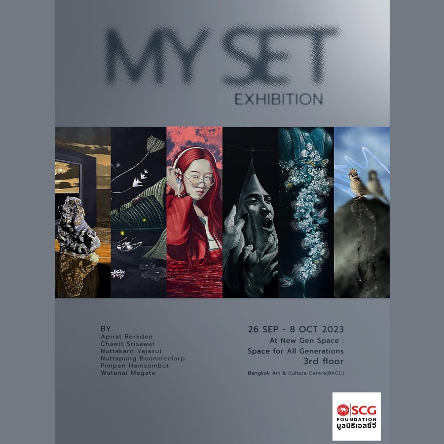 นิทรรศการ “MYSET” ชวนมาสํารวจพื้นที่ภายในจิตใจของศิลปินทั้ง 6 ท่าน ได้แก่ ชวิศ ศรีสวัสดิ์, ณัฐกาญจน์ วาจาสัตย์, ณัฐพงศ์ บุญมีลาภ, พิมพ์เพ็ญ หอมสมบัติ, วรรธนัย มาเกตุ และอภิรัฐ ฤกษ์ดี ที่ได้เปิดพื้นที่ส่วนตัวทางความคิดของตนเองผ่านผลงานภาพพิมพ์ ซึ่งเป็นผลสัมฤทธิ์ของร่องรอยของภาวการณ์ที่เกิดขึ้นไม่ว่าจะเป็นเรื่องที่ดีหรือร้าย ทุกข์หรือสุข เปรียบเสมือนวัตถุสําเนาที่ถูกสร้างผ่านกระบวนการพิมพ์ อาจกล่าวว่าผลงานทุกคนเป็นเหมือนผลลัพธ์ทางความคิดที่มีการถ่ายทอดผ่านความทรงจําส่วนบุคคลที่เปรียบเสมือนแม่พิมพ์ของ ผลงานของแต่ละศิลปินที่แตกต่างกัน แต่ล้วนมีจุดร่วมถึงการสะท้อนตัวตนออกจากพื้นที่ภายในจิตใจ