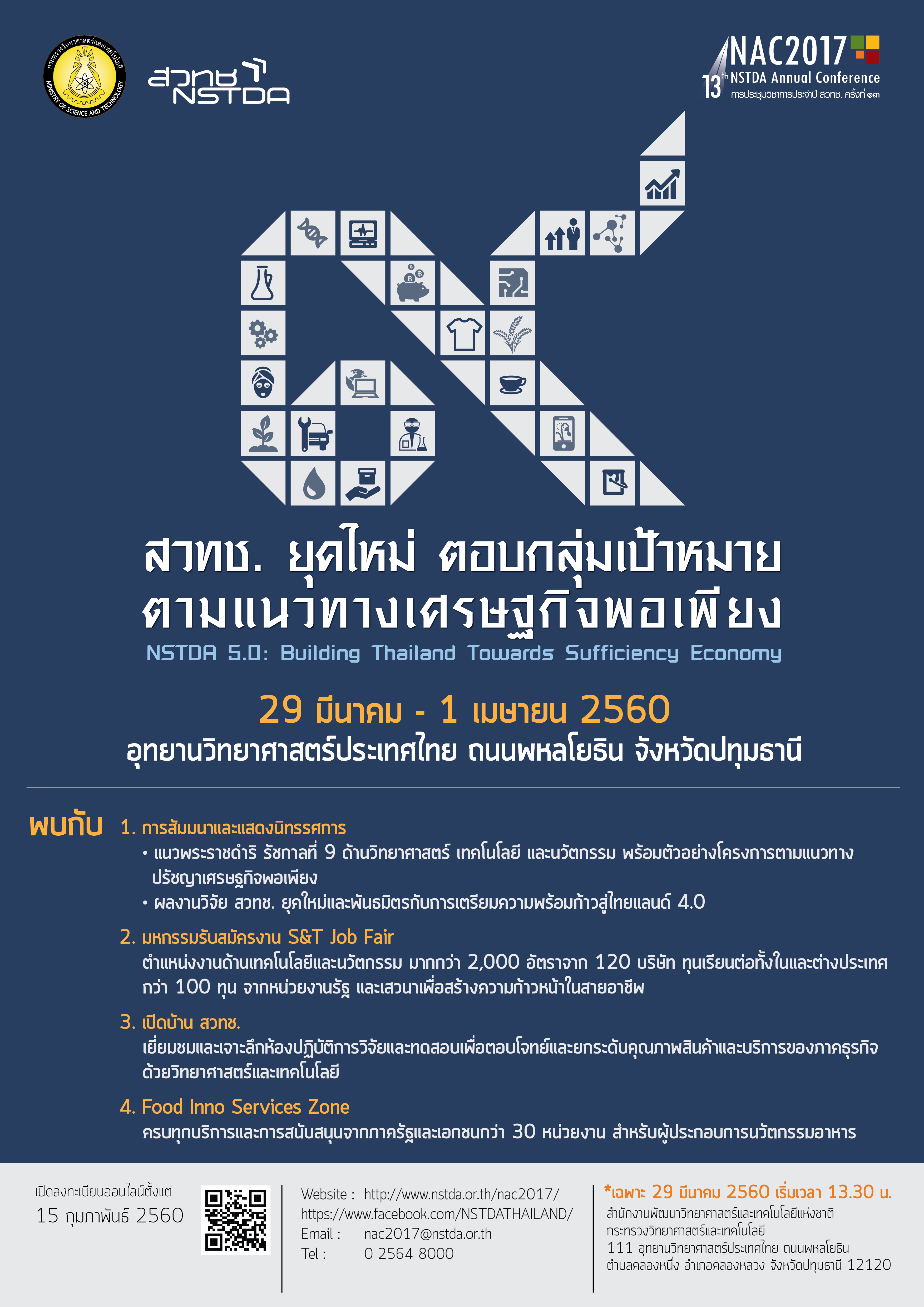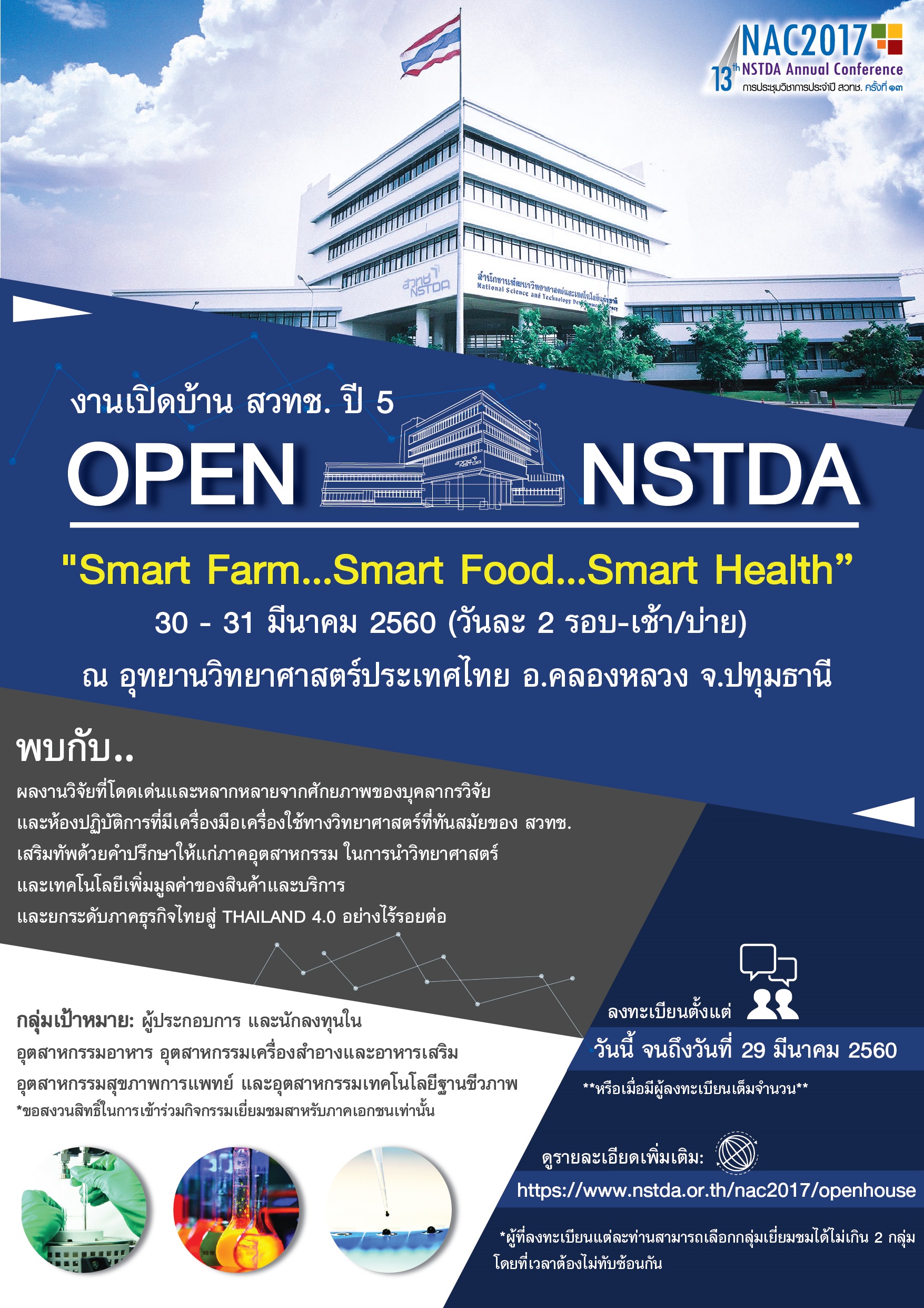 งานเปิดบ้าน สวทช. ปี 5 เป็นส่วนหนึ่งในกิจกรรมการประชุมวิชาการประจำปี สวทช. ครั้งที่ 13 ซึ่งจัดขึ้นเป็นครั้งที่ 5 เพื่อเปิดโอกาสให้ภาคธุรกิจภาคอุตสาหกรรมและนักลงทุน ที่สนใจ ได้เยี่ยมชมผลงานวิจัยที่โดดเด่นและหลากหลาย จากศักยภาพของบุคลากรวิจัยและห้องปฏิบัติการ ที่มีเครื่องมือเครื่องใช้ทางวิทยาศาสตร์ที่ทันสมัยของ สวทช. ทั้งยังมีบุคลากรด้านพัฒนาธุรกิจ ที่พร้อมให้คำปรึกษาให้แก่ภาคอุตสาหกรรม ในการนำวิทยาศาสตร์และเทคโนโลยียกระดับคุณภาพของสินค้าและบริการ และเพื่อเพิ่มขีดความสามารถในการแข่งขัน ให้แก่ผู้ประกอบการไทยสามารถแข่งขันได้