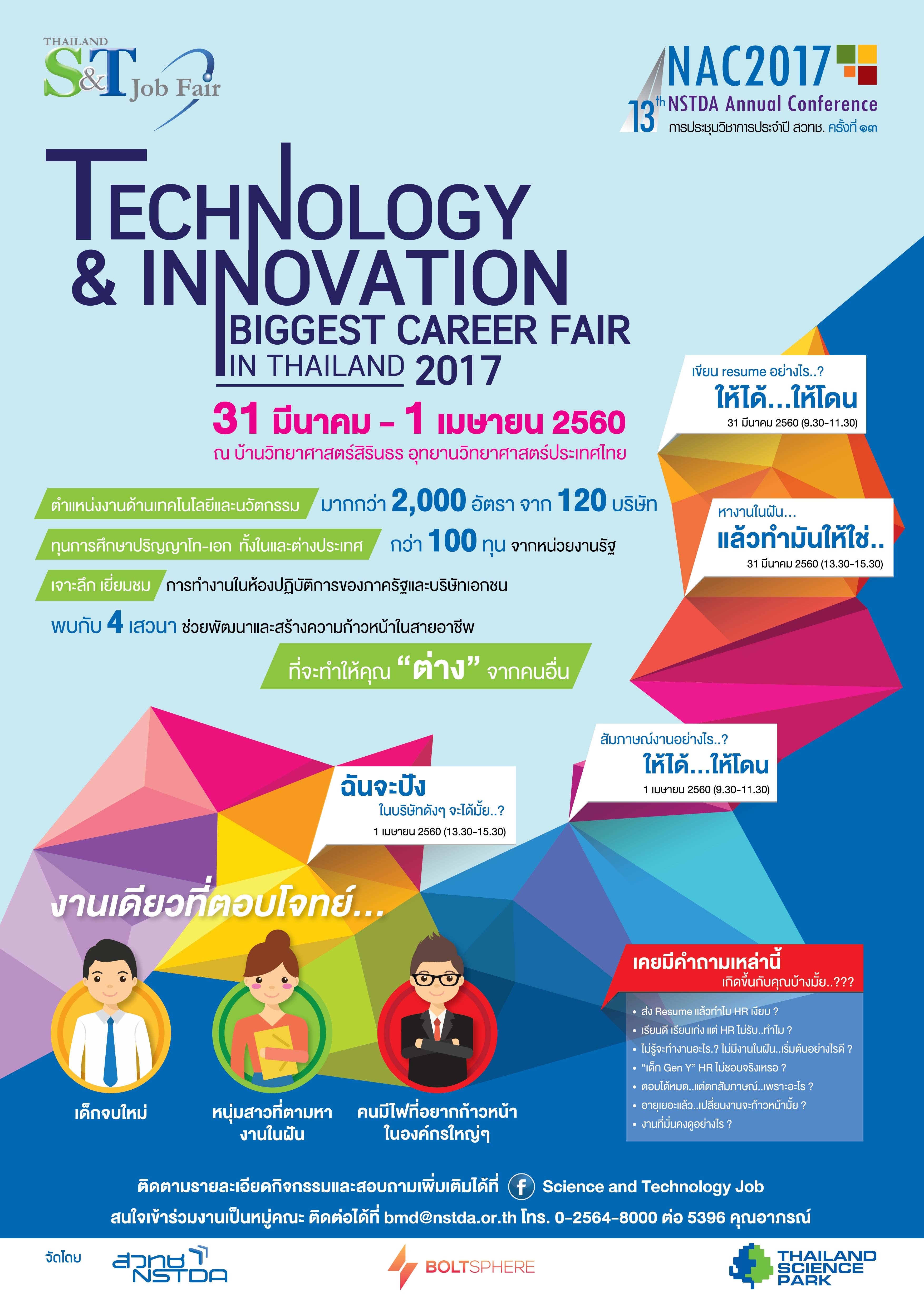 พบกับตำแหน่งงานด้านเทคโนโลยีและนวัตกรรม มากกว่า 2,000 อัตรา จาก 120 บริษัทชั้นนำ