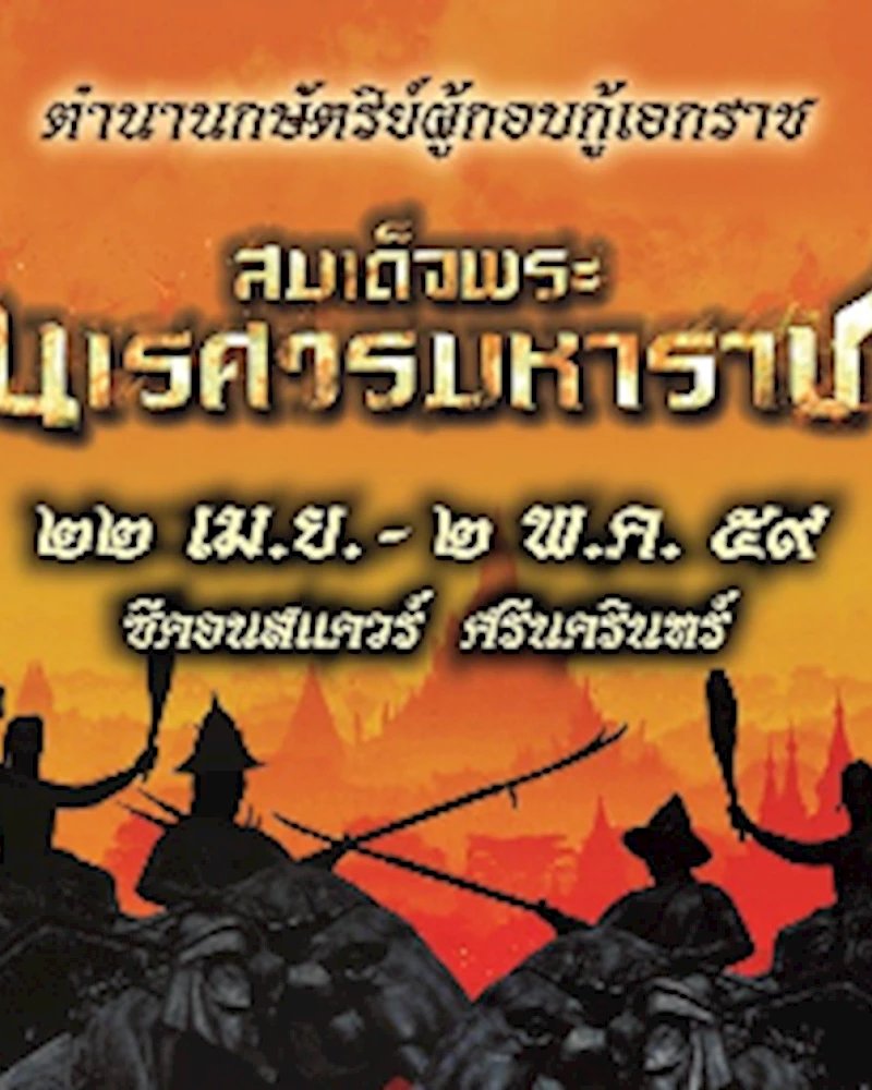 มาร่วมตามรอยวีรกษัตริย์ไทยผู้ยิ่งใหญ่ และร่วมเทิดพระเกียรติในงาน "ตำนานกษัตริย์ผู้กอบกู้เอกราช สมเด็จพระนเรศวรมหาราช" เข้าชมฟรี! ตั้งแต่วันที่ 22 เมษายน - 2 พฤษภาคม ศกนี้ บริเวณลานน้ำพุ ชั้น 1 ศูนย์สรรพสินค้าซีคอนสแควร์ ถนนศรีนครินทร์
