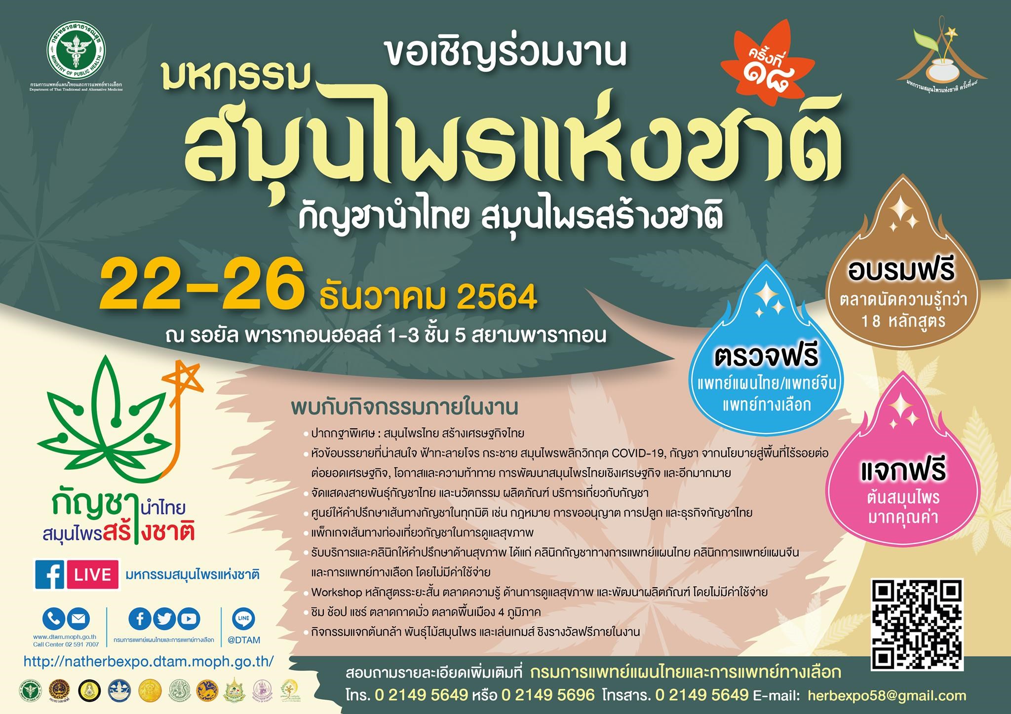 มหกรรมสมุนไพรแห่งชาติ ครั้งที่ 18 "กัญชานำไทย สมุนไพรสร้างชาติ"