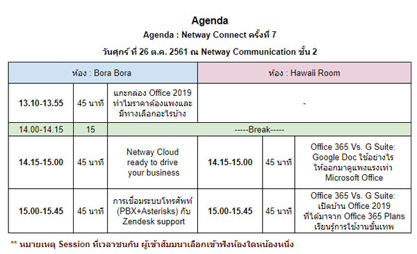 เนื้อหาครั้งนี้เน้นผลิตภัณฑ์จากค่ายไมโครซอฟท์ ทั้งเรื่อง ใหม่แกะกล่อง Office 2019 , Netway Cloud ready to drive your business , การเชื่อมระบบโทรศัพท์ (PBX+Asterisks) กับ Zendesk support , Office 365 Vs. G Suite:  Google Doc ใช้อย่างไรให้ออกมาดูแพงแรงเท่า Microsoft Office