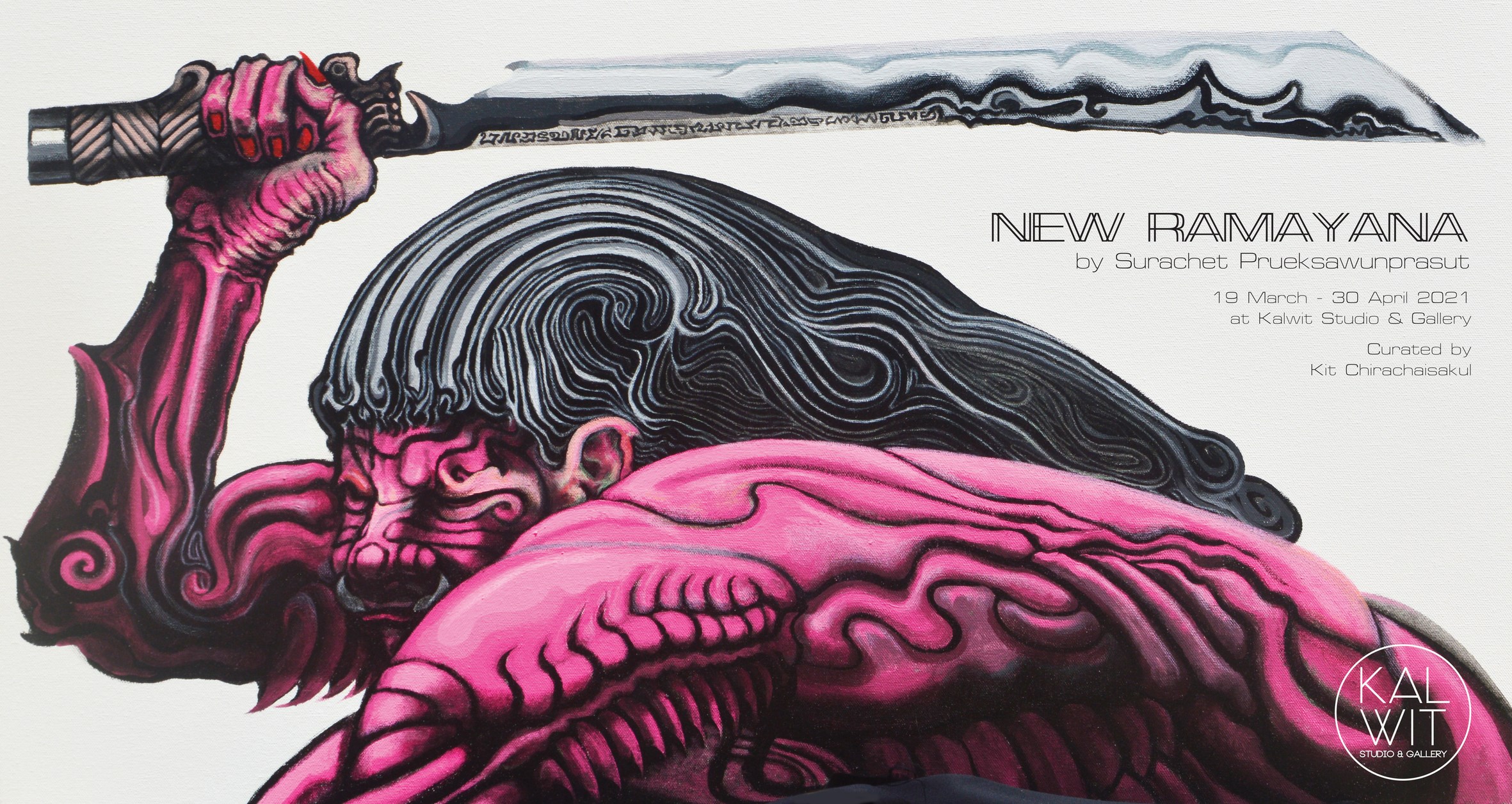 Mr.Surachet Prueksawunprasut imagines a hopeless future from distorted growth through architecture in a desperate atmosphere, which is only a reflection of the outer shell. The artist believed that it would be able to reflect the inner body more by using Ramayana as a reflection, that he imagined and create a new model for Ramayana, follow the ideal beauty through the color lines influenced by Khmer, Indian and Chinese arts, etc., to be a bridge to communicate with future people that “How do you imagine the future today? The answer is time”.
