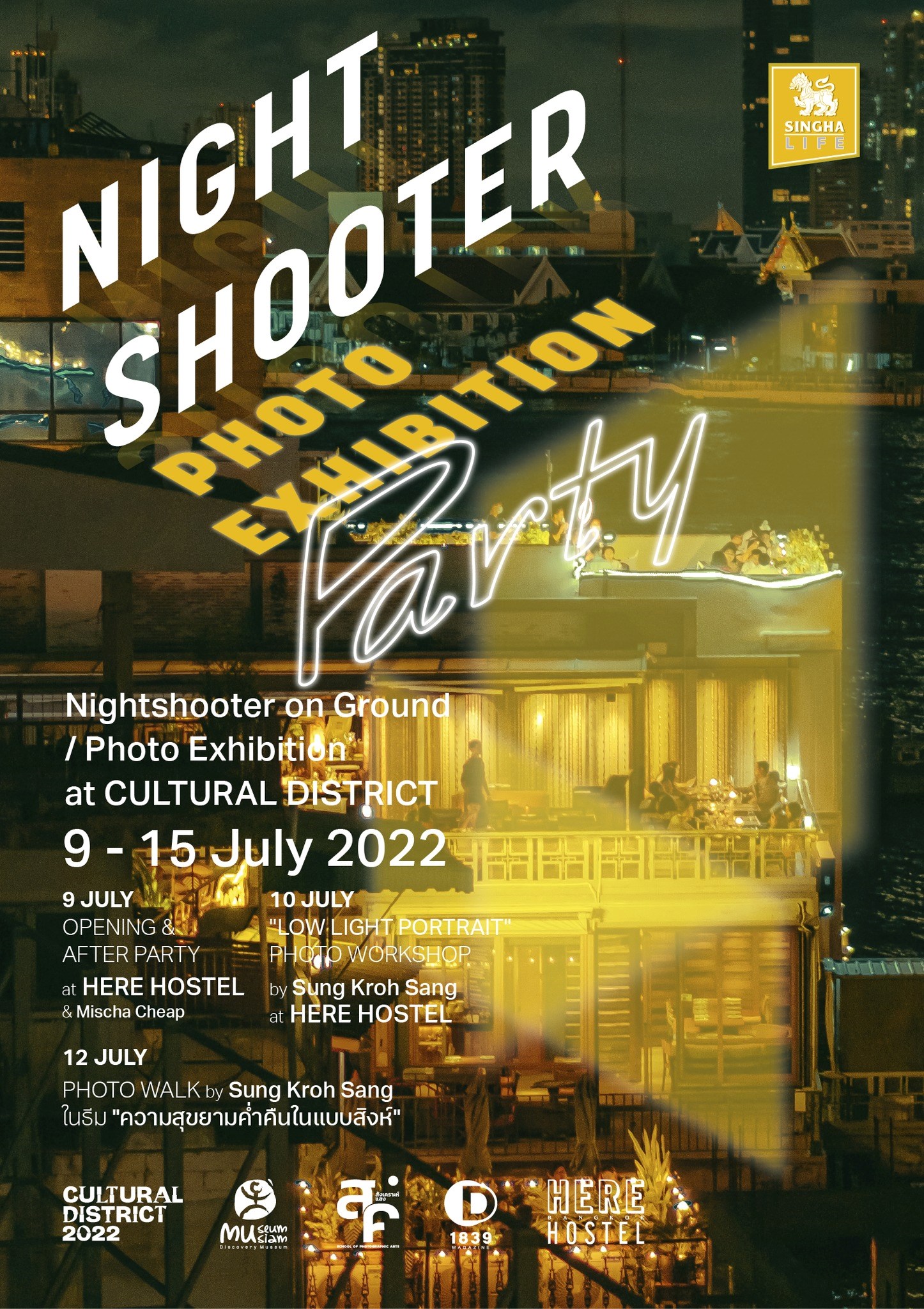 สำหรับผู้ที่สนใจสามารถเข้าร่วมชมนิทรรศการภาพถ่ายงาน Singha Night Shooter Exhibition Party X Cultural District ที่รวมภาพถ่ายจากศิลปินชื่อดัง อีกทั้งภาพสุดชิคจากผู้ร่วมประกวดถ่ายภาพในกิจกรรม Night Shooter Empowered By Singha พร้อมกิจกรรมพิเศษโดนใจในวันที่ 9-15 กรกฎาคม 2565 นี้