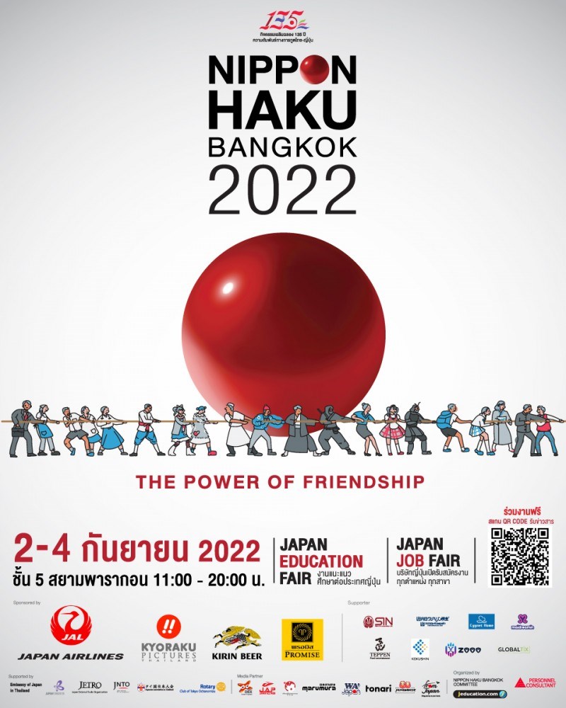 NIPPON HAKU BANGKOK 2022 มหกรรมญี่ปุ่นนิปปอนฮาคุ รวบรวมทุกเรื่องของความเป็นญี่ปุ่นมาไว้ในงานเดียว พร้อมให้คนรักญี่ปุ่นได้สัมผัสกับความเป็นญี่ปุ่นอย่างแท้จริง วันที่ 2 - 4 กันยายน 2565 เวลา 11.00 - 20.00 น. ที่ชั้น 5 สยามพารากอนที่เดิม เข้างานฟรี!