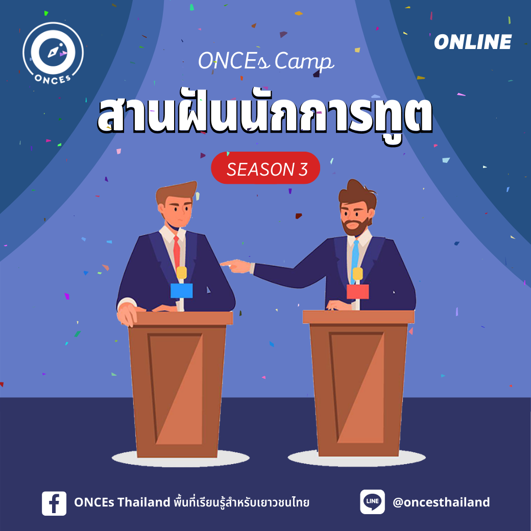 ONCEs Camp ตอน สานฝันสู่นักการทูต Season 3 ใครมีความฝัน อย่ารอช้า! จะสนุก และท้าทายแค่ไหน พบคำตอบได้ในงานนี้! รับสมัครน้องๆ อายุ (14-25 ปี)