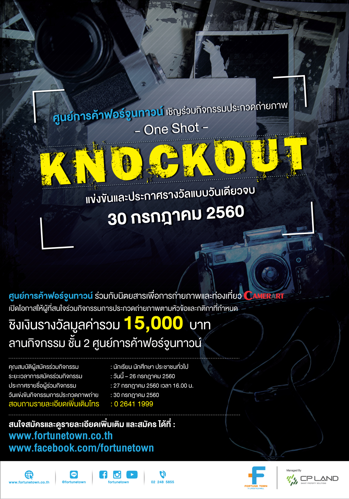ศูนย์การค้าฟอร์จูนทาวน์ขอเชิญร่วมประกวดถ่ายภาพ “One Shot Knockout”