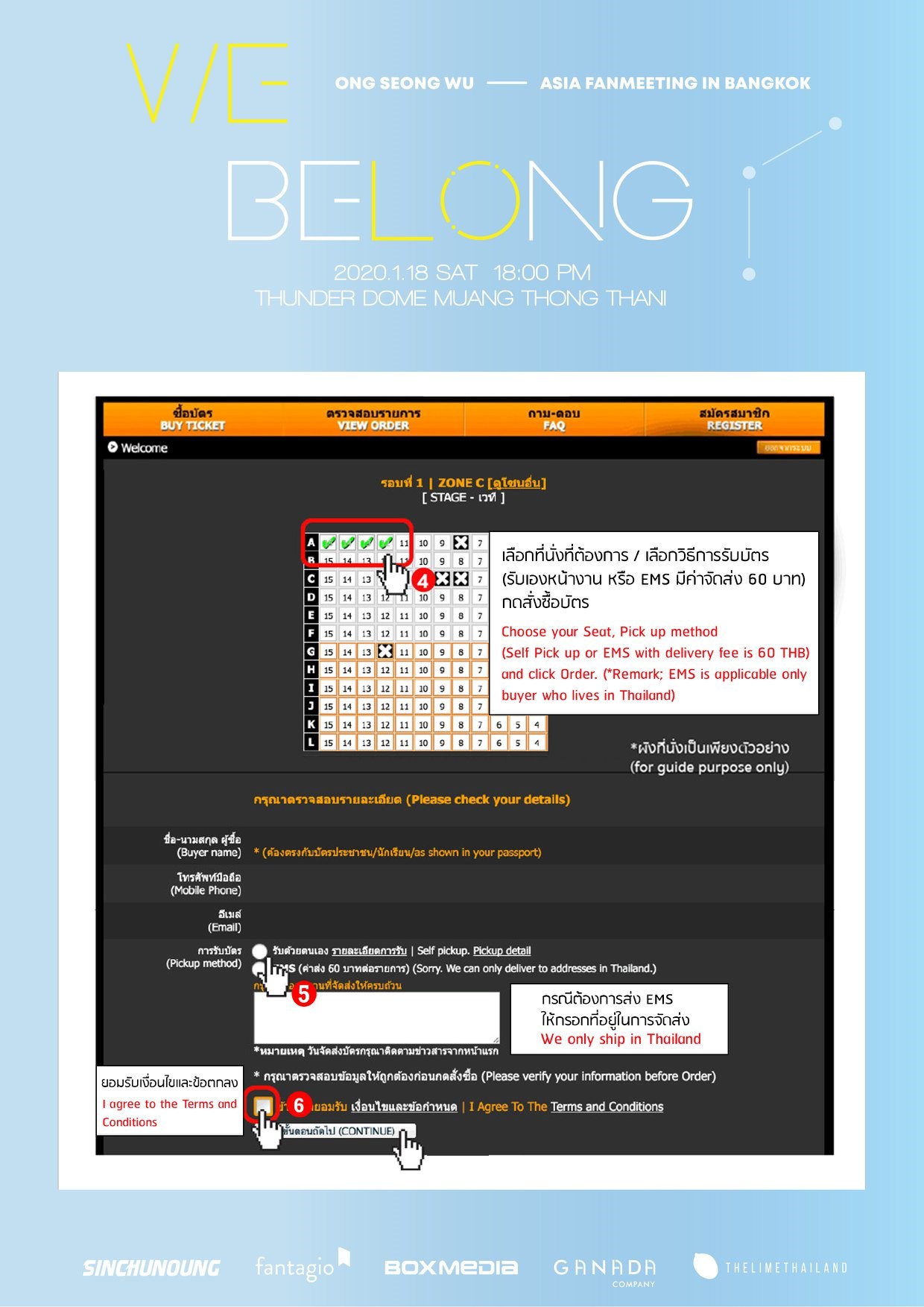 2.3. Choose your Seat, Pick up method (Self Pick up or EMS with delivery fee is 60 THB), and click Order. (*Remark; EMS is applicable only buyer who lives in Thailand)