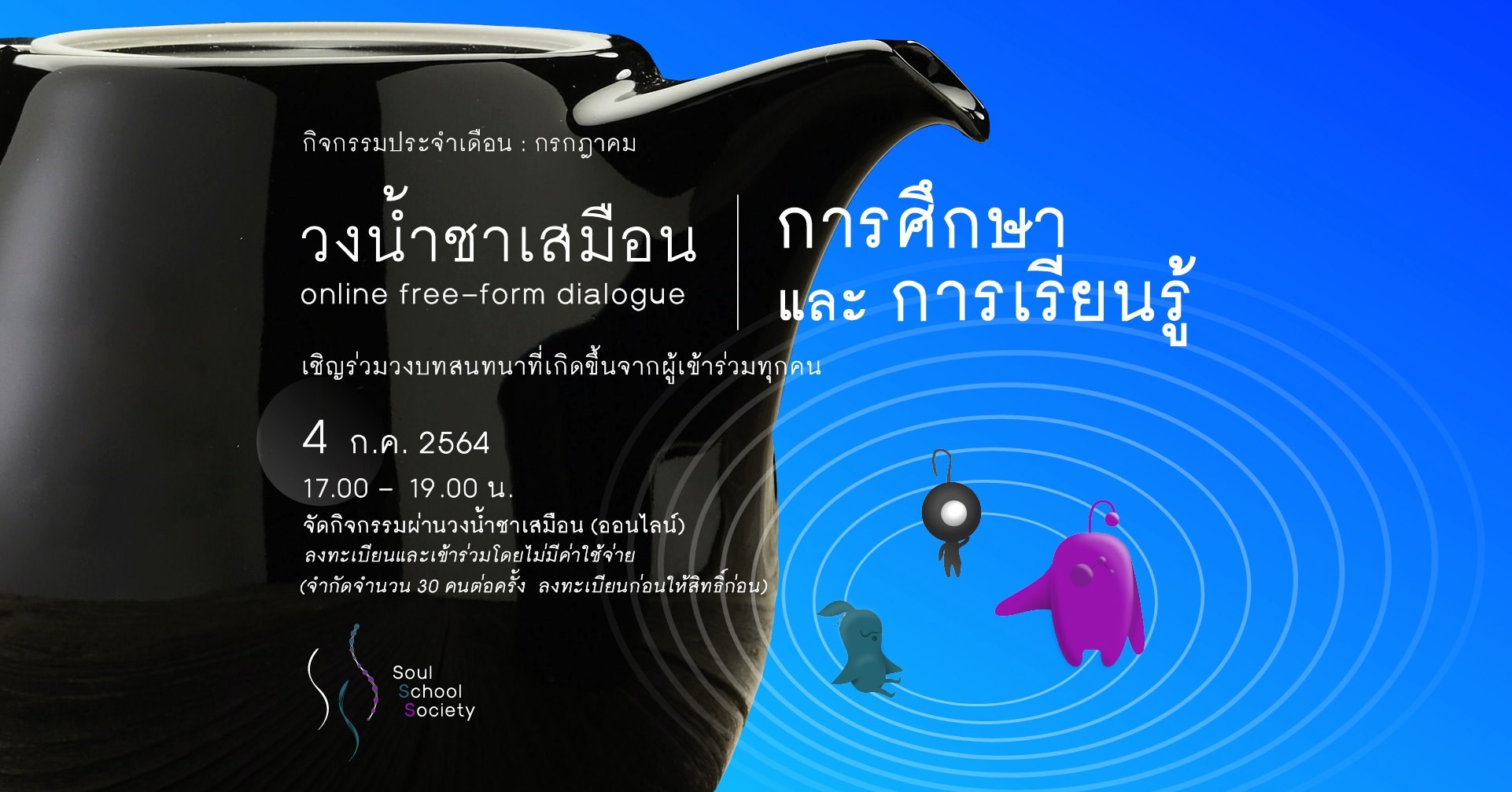 ประเด็นด้าน “การศึกษาและการเรียนรู้” วันที่ 4 ก.ค. 2564 เวลา 17.00 - 19.00 น. จัดกิจกรรมผ่านวงน้ำชาเสมือน* (ออนไลน์) ลงทะเบียนและเข้าร่วมได้โดยไม่มีค่าใช้จ่าย จำกัดจำนวน 30 คนต่อครั้ง (ลงทะเบียนก่อนให้สิทธิ์ก่อน) ถ้าพลาดครั้งนี้ รอครั้งต่อไปอีกทีก็เดือนหน้านะจ๊ะ