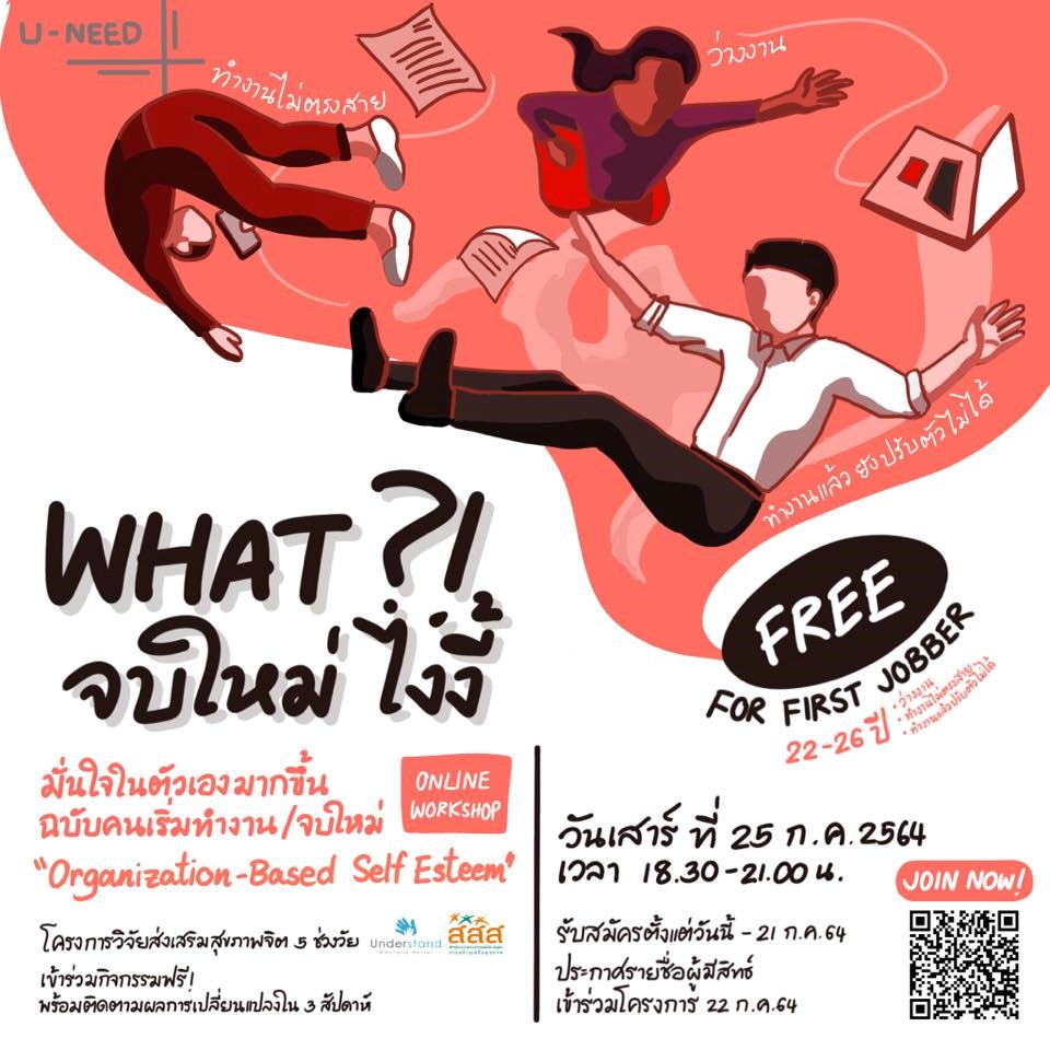 จนอยากจะร้องออกมาดังๆ ว่า What ?! จบใหม่ไงงี้ ?! นำคำถามเหล่านั้น มาร่วมค้นหาคำตอบไปด้วยกันกับ Free Online Workshop : มั่นใจในตัวเองมากขึ้น! ฉบับคนเริ่มทำงาน/จบใหม่ "Organization-Based Self-Esteem"