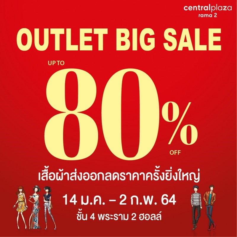 OUTLET BIG SALE วันที่ 14 มกราคม 2564 - 2 กุมภาพันธ์ 2564 ณ ชั้น 4 พระราม 2 ฮอลล์ เซ็นทรัลพลาซา พระราม 2 OUTLET BIG SALE เตรียมช้อปเสื้อผ้าส่งออก ลดสูงสุดถึง 80% ทั้งชายและหญิงมีให้เลือกหลากหลายสไตล์ ในราคาหลักร้อยเท่านั้น!