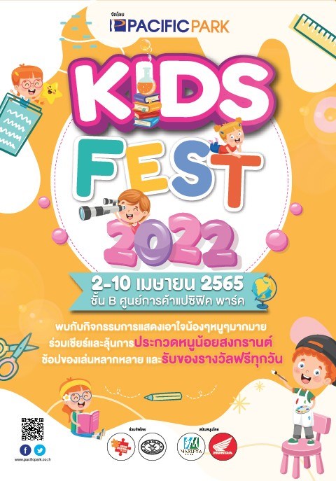 ศูนย์การค้าแปซิฟิค พาร์ค ศรีราชา เชิญเที่ยวชมงาน Pacific Kids Fest 2022 พบกับกิจกรรมการแสดงเอาใจคุณหนูตัวน้อย พร้อมร่วมเชียร์ และเป็นกำลังใจ กับการประกวดหนูน้อยสงกรานต์ เลือกชม เลือกซื้อ สินค้าหลากหลาย อาทิ เสื้อผ้า ของใช้ และของเล่นเด็ก อื่น ๆ อีกมากมาย ระหว่างวันที่ 2 - 10 เมษายน 2565 ณ ลานโปรโมชั่น ชั้น B ศูนย์การค้าแปซิฟิค พาร์ค ศรีราชา