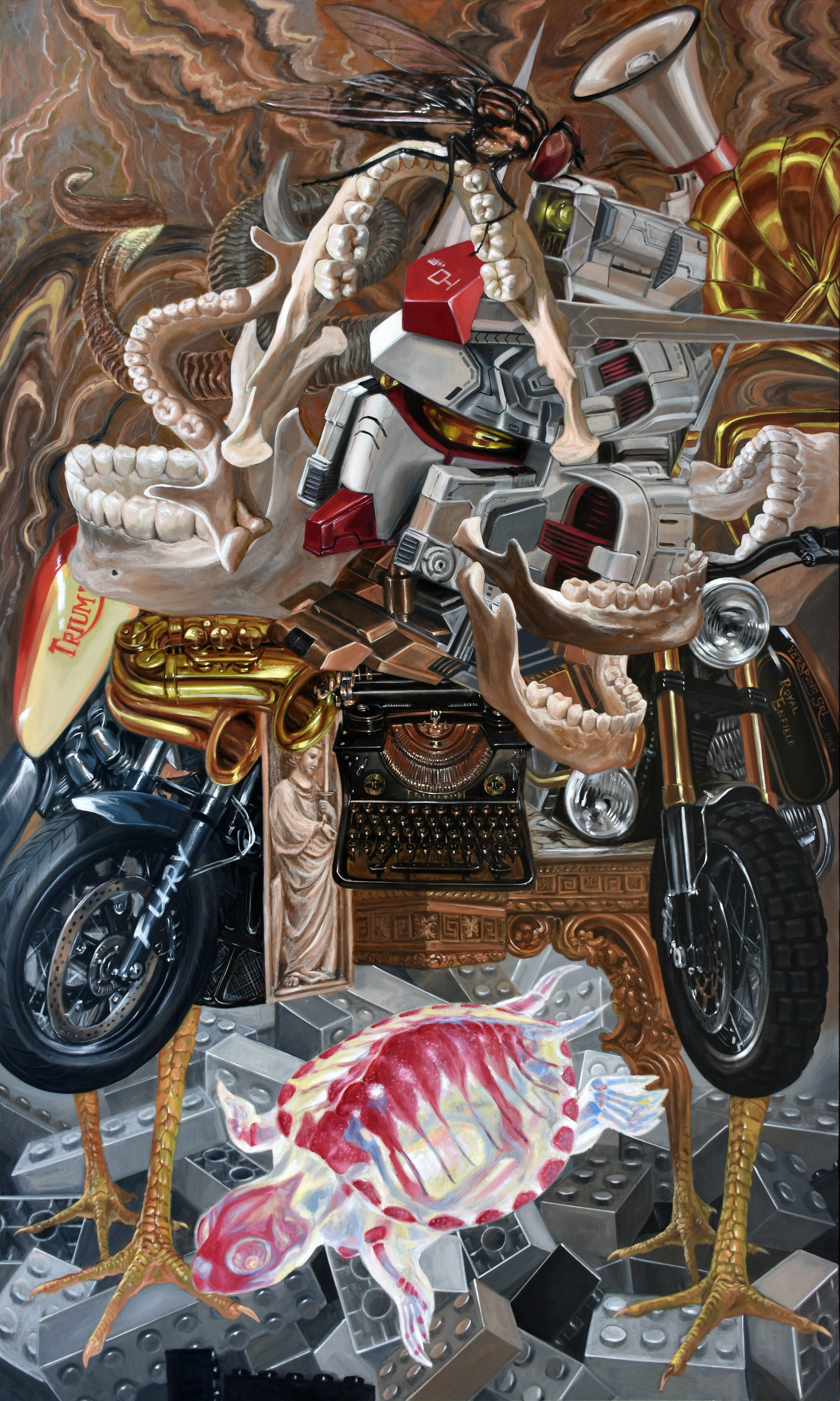 “Painter Manifesto” exhibition is the 11th solo exhibition of the crazy and powerful young artist “Verapong Sritrakulkitjakarn”, Who is an active figure of Thai and internationally artist and well known as Ayino. The work this time was inspired from many different things including music, literature, history and the environment around us in the present time to compose and assemble to be a contemporary story, expressing to be a huge oil painting in order to to be able to collect feelings, the greatness of life and the world through this canvas.