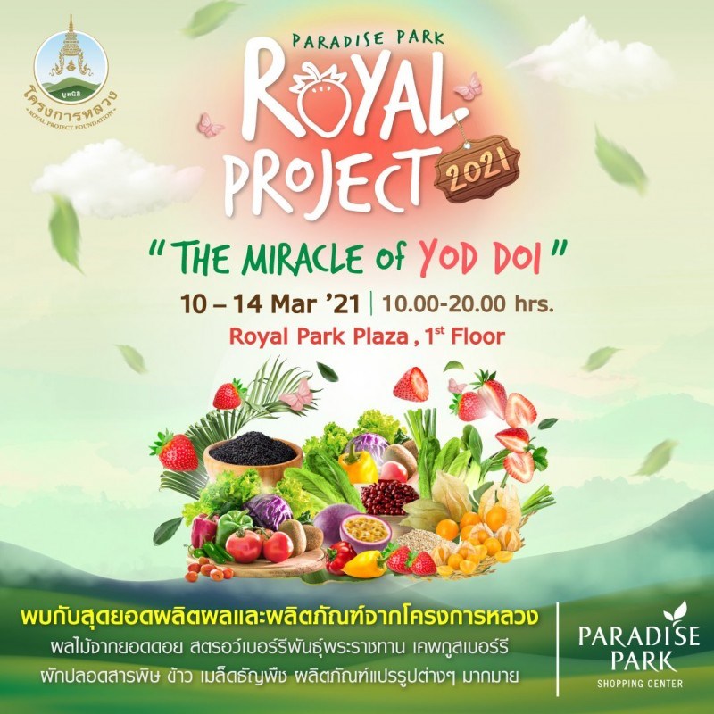พบกับงาน Paradise Park Royal Project 2021 วันที่ 10 - 14 มีนาคม 2564 ณ บริเวณ Royal Park Plaza ชั้น 1 Paradise Park "The Miracle Of Yod Doi" สุดยอดผลิตผลและผลิตภัณฑ์จากโครงการหลวง อธิ ผลไม้จากยอดดอย สตรอว์เบอร์รีพันธุ์พระราชทาน เคพกูสเบอร์รี ผักปลอดสารพิษ ข้าว เมล็ดธัญพืช ผลิตภัณฑ์แปรรูปต่าง ๆ มากมาย