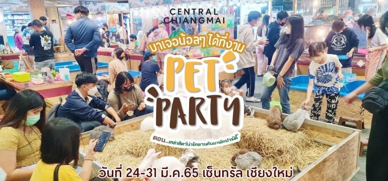 PET PARTY 2022 วันที่ 24 - 31 มีนาคม 2565 ณ ศูนย์การค้าเซ็นทรัล เชียงใหม่ ชาวเชียงใหม่มีนัดกัน มาเจอน้อล ๆ ได้ที่งาน "PET PARTY 2022" ตอน เหล่าสัตว์น่ารักชวนกันมาพักปาร์ตี้ กับกองทัพเหล่าสัตว์แปลก เซเลบน้องหมา น้องแมว โชว์การแสดงจากสัตว์เลี้ยงสุดน่ารัก พร้อมช้อปสินค้าเกี่ยวกับสัตว์เลี้ยงกว่า 10 บูธ อาทิ ป้อนนมแพะแกะ, ป้อนนมปลาคราฟ, ป้อนอาหารกระต่าย, ป้อนอาหารหนูแกสบี้, ป้อนนมหนู, กิจกรรมตักปลาที่มาให้ทุกคนได้เล่นและสนุกสนานกันอย่างจุใจ วันที่ 24 - 31 มีนาคม 2565 ณ ชั้น 1 ศูนย์การค้าเซ็นทรัล เชียงใหม่