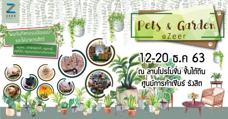 Pets&Garden วันที่ 12 - 20 ธันวาคม 2563 เวลา 10.30 - 20.00น. ณ ลานโปรโมชั่น ชั้น ใต้ดิน ศูนย์การค้าเซียร์รังสิต Pets&Garden งานจำหน่ายสินค้าเฟอร์นิเจอร์,ต้นไม้ และจัดแสดงสัตว์ต่าง ๆ ภายในงานคุณลูกค้าสามารถให้อาหารสัตว์ได้ ไม่ว่าจะเป็นน้องหมู, หนูแคระ, เต่า และสัตว์อื่น ๆ อีกมากมาย สนใจมาชมและช๊อปกันได้ วันที่ 12 - 20 ธ.ค. 63 เวลา 10.30 - 20.00น. ที่ ลานโปรโมชั่น ชั้น ใต้ดิน ศูนย์การค้าเซียร์รังสิต